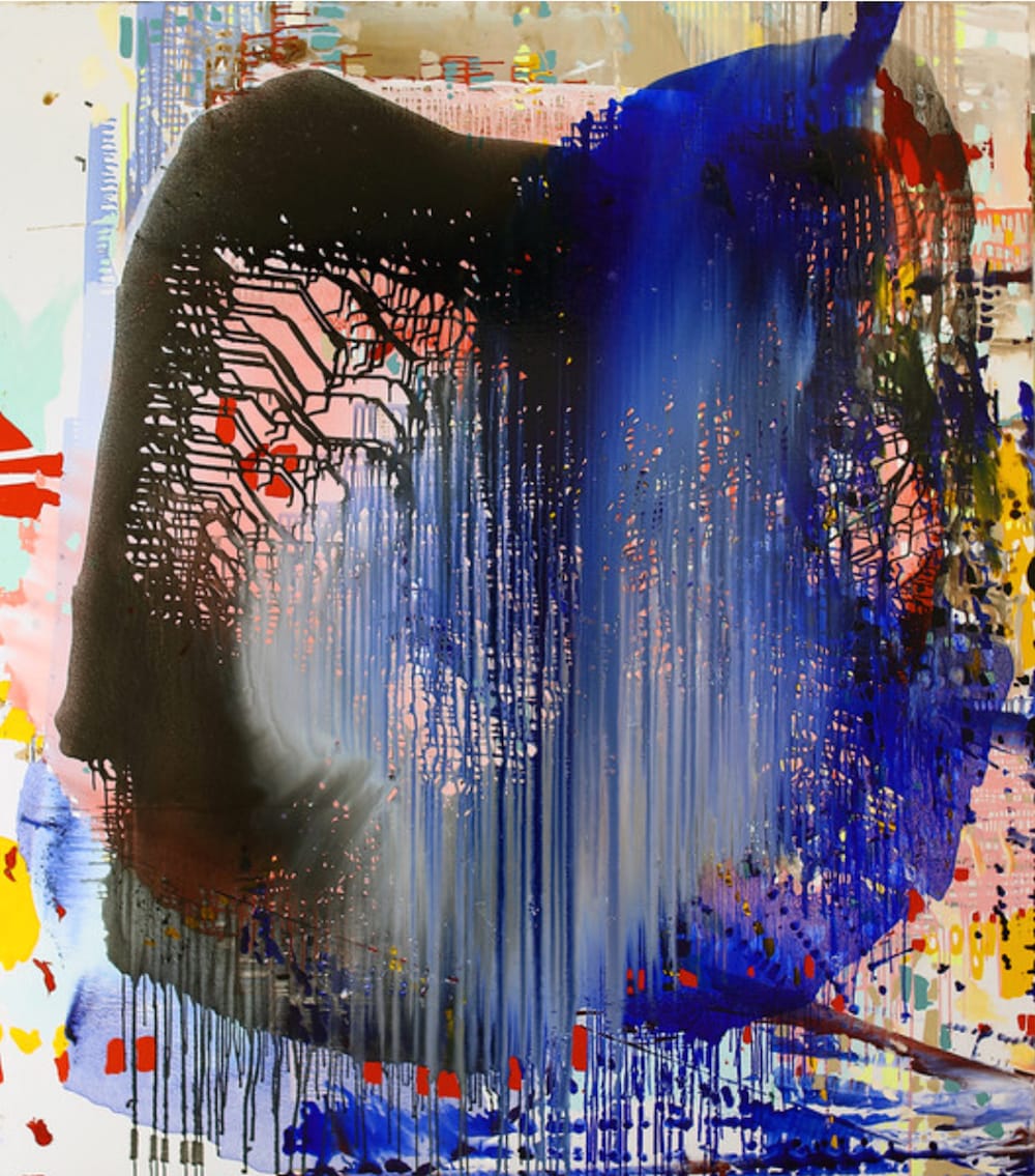 The drips, which headed in divergent directions and often hooked back upon themselves, were the product of repeated turns of the paper’s orientation. One of the four pieces featured a kind of obliterating chaos in the center, a swirl of black, red and shoe-polish brown. That hole, if you want to call it that, takes center stage in the brash, new, spectacularly realized works that now fill — one could say overfill — Van Doren Waxter on East 73rd Street and Eleven Rivington’s Chrystie Street location.