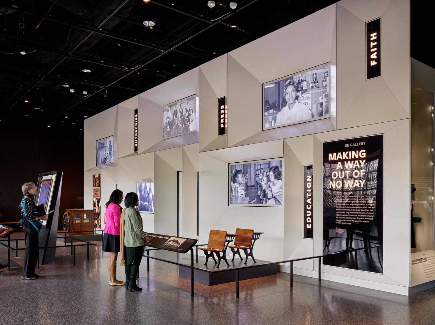 This design is not naïve. The arrangement tacitly asks visitors to understand African American culture as one that is founded upon its history, and generated by it. The implicit construction of this story of culture is elaborated and deepened by the wall texts and multimedia presentations in the “Culture” section. In total, the materials convey the argument that African American culture is a series of remarkably inventive moves to make, you might say, “sumpin outta nuthin.” If you’ve lived in this country for awhile, you have heard or seen evidence of this alchemy historically enacted: black soldiers distinguishing themselves in battle despite being treated as second-class citizens by their home nation; black athletes demolishing previously held records in amateur and professional arenas despite the public will being largely marshaled against them; black students finding a way to receive a public education on par with that of whites by undoing a long-standing Supreme Court decision that had installed and defended an inherently discriminatory system. The phrase “making a way out of no way,” as one of the exhibits proclaims, is an epigram that holds in tension the contravening themes of black life: Black folks are being systematically held back, cheated, and erased, but black folks gonna triumph anyway.