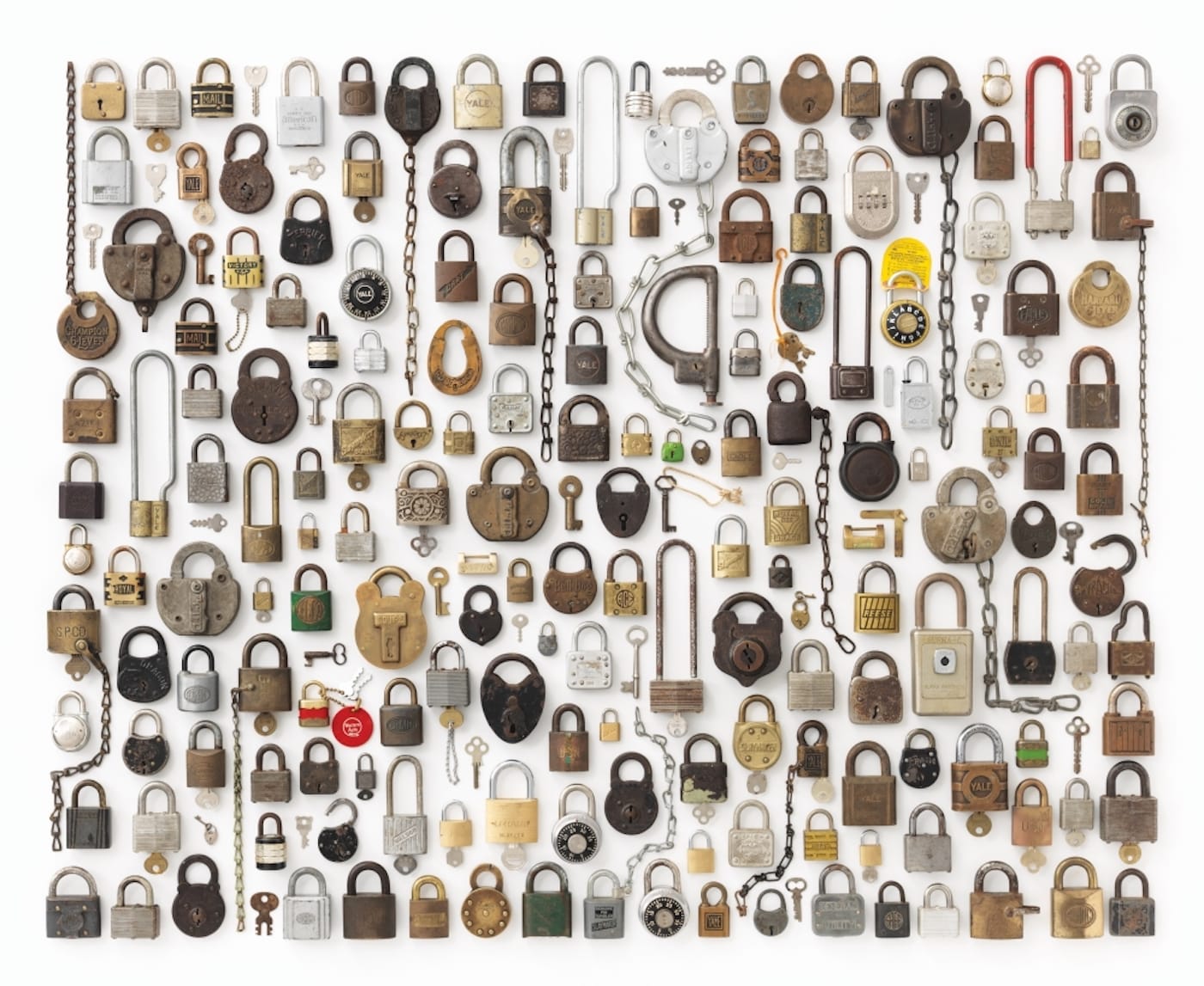 Things Organized Neatly features the work of 13 artists and photographs of their own collections of objects, ending with a few choice works by Radcliffe himself. Each portrays a certain “aesthetic of precision,” as Radcliffe likes to call it. In Tom Sachs‘s foreword to the book, he writes about his own preoccupation with “knolling,” arranging objects parallel and at 90 degree angles. “Much is made to compare these methods with obsessive-compulsive disorder but we all know that OCD is a form of narcissism,” he writes. “Knolling helps us see what’s in front of us so we can discern … always with the aim of understanding materials.”