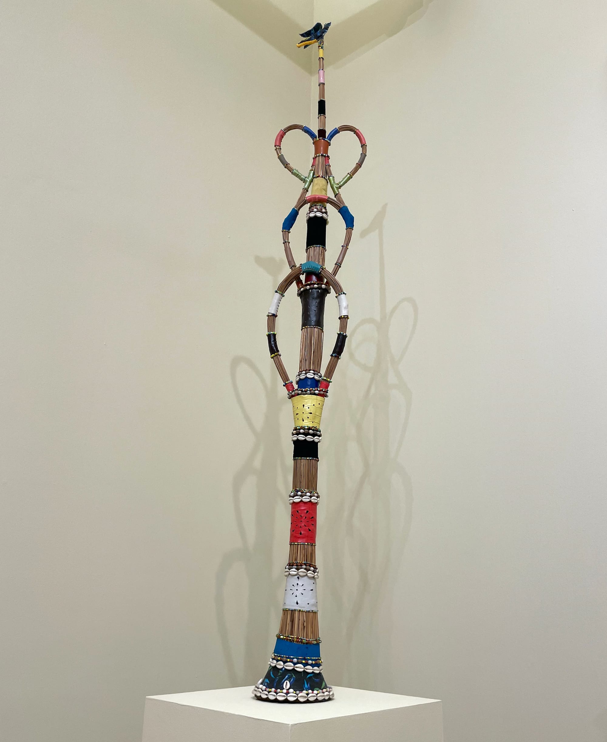 The show surveys Afro-Brazilian artist Deoscóredes Maximiliano dos Santos, better known as Mestre (Master) Didi, who was also a Candomblé priest, and the mixed-media sculptures on view are related to liturgical objects used in ceremonies for the African diasporic religion. Just as important, though, is the form. Born in 1917 in Salvador, Brazil, Mestre Didi began exhibiting his sculptures in the 1960s, drawing a distinction between the objects used in religious ceremonies and those shown in art institutions; by the time of his death in 2013, he had established an international art practice. In doing so, he foregrounded African diasporic perspectives in Brazilian art and asserted the presence of alternative modernisms in a Eurocentric art world.