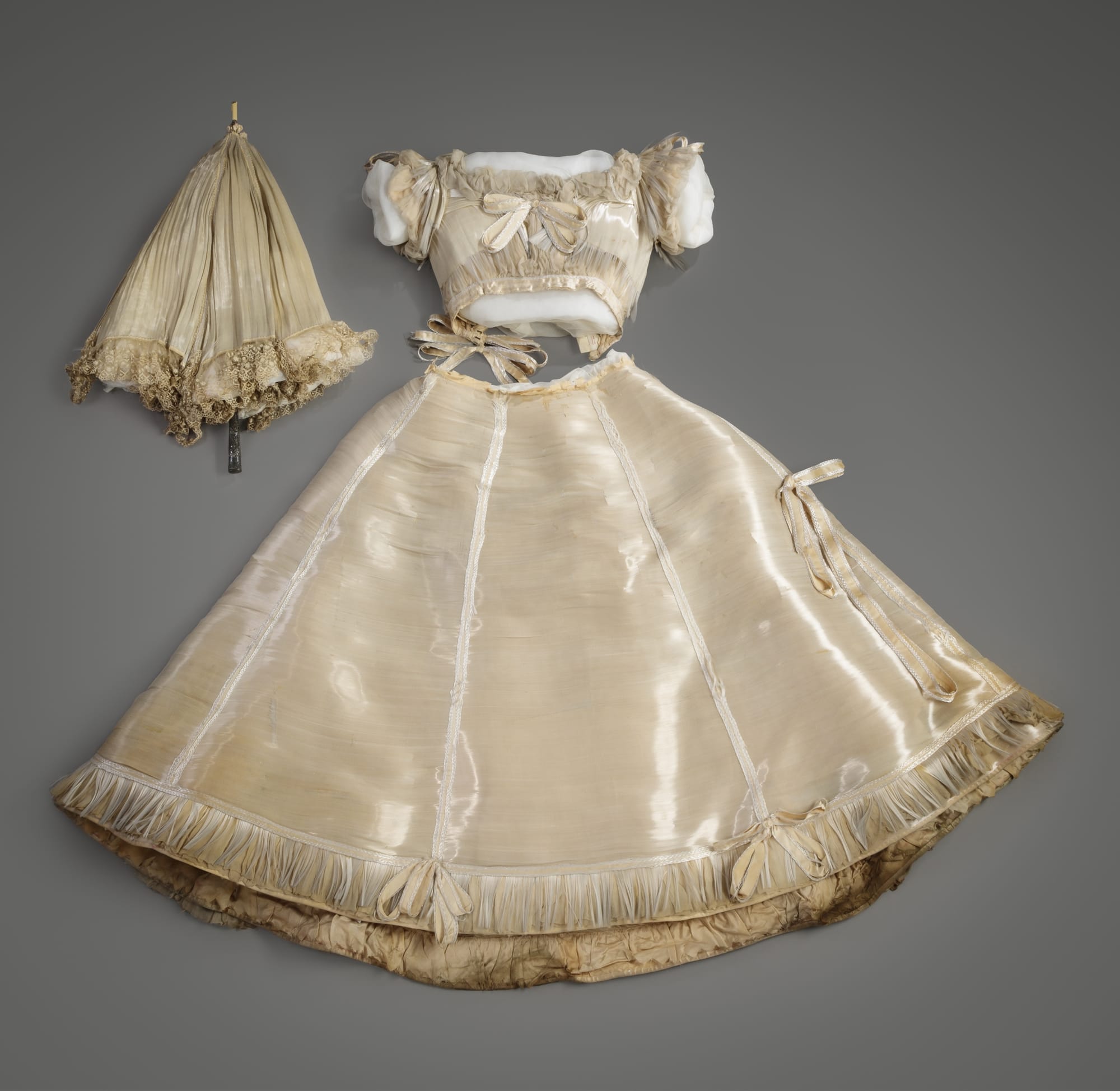 A spokesperson for the museum confirmed that Libbey's wife, Florence Scott Libbey, came into possession of Cayvan's dress and parasol and eventually donated them to the TMA collection in 1925. The museum notes that the dress is in a fragile state as the broken glass filaments cut into the silk threads, creating quite the conundrum for the conservation specialists looking after it.