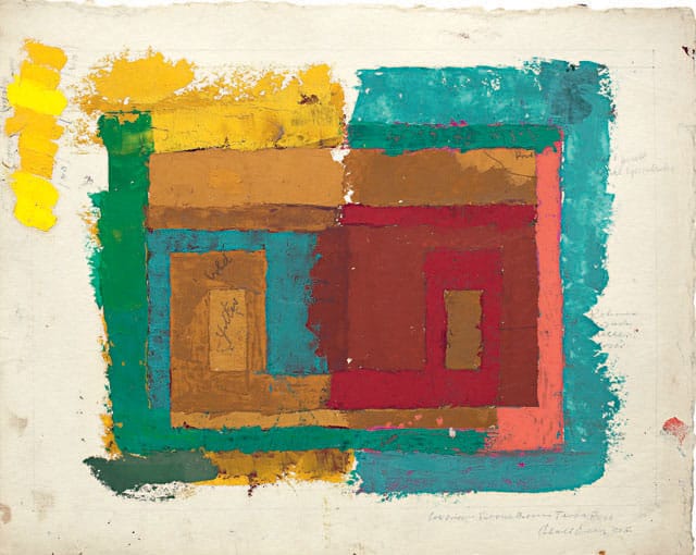 “Study for a Variant / Adobe (I)” (ca. 1947). Oil on blotting paper with pencil, 24.1 x 30.6 cm. © 2012 The Josef and Anni Albers Foundation / Artists Rights Society New York. Digital Image by Imaging 4 Art, inv. no. 1976.2.270.
