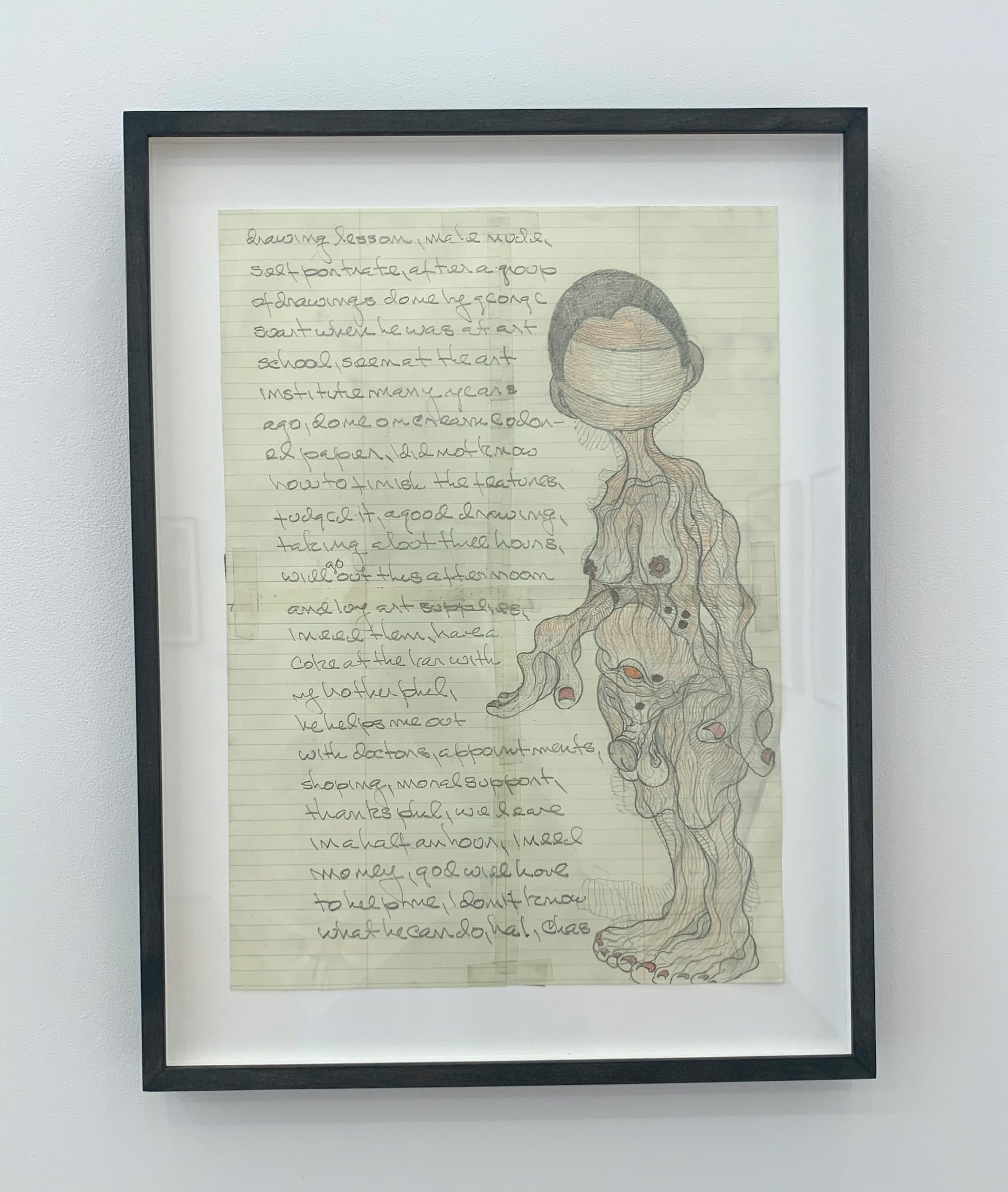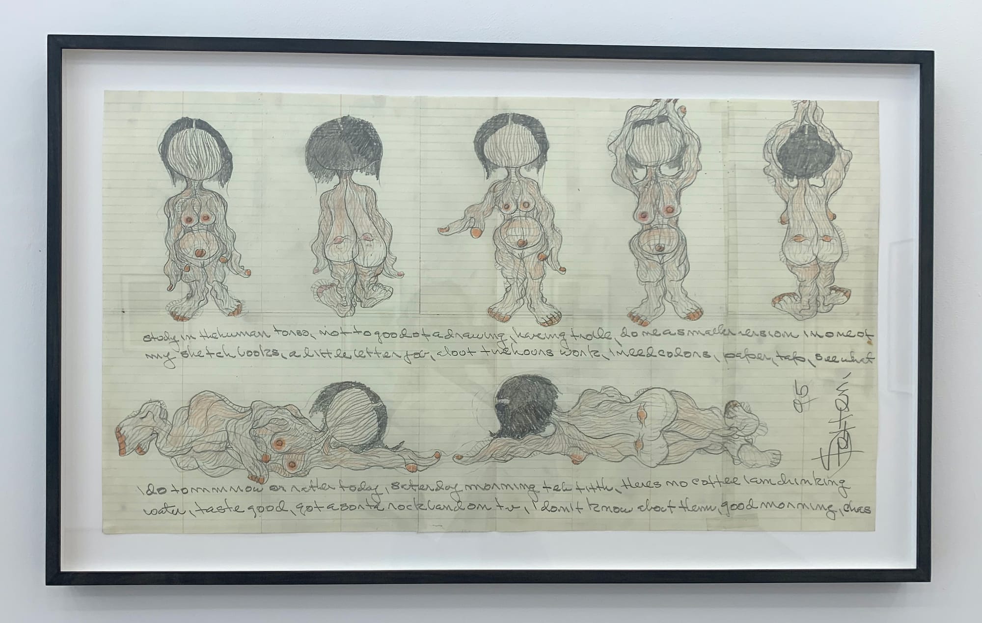 Charles Steffen: 1995, A Lesson in Life Drawing gathers nearly four dozen works on paper from the final year of his life, each accompanied by the artist’s written commentary, sometimes reflecting on a particular challenge the subject presented, other times noting what he had had for lunch that day, and usually signing off with “god bless, chas.” Though other surviving drawings are decidedly weirder, with human bodies sporting impossibly long necks and one-eyed, alien-like heads, the works in this show, as the title suggests, hew more closely to life.