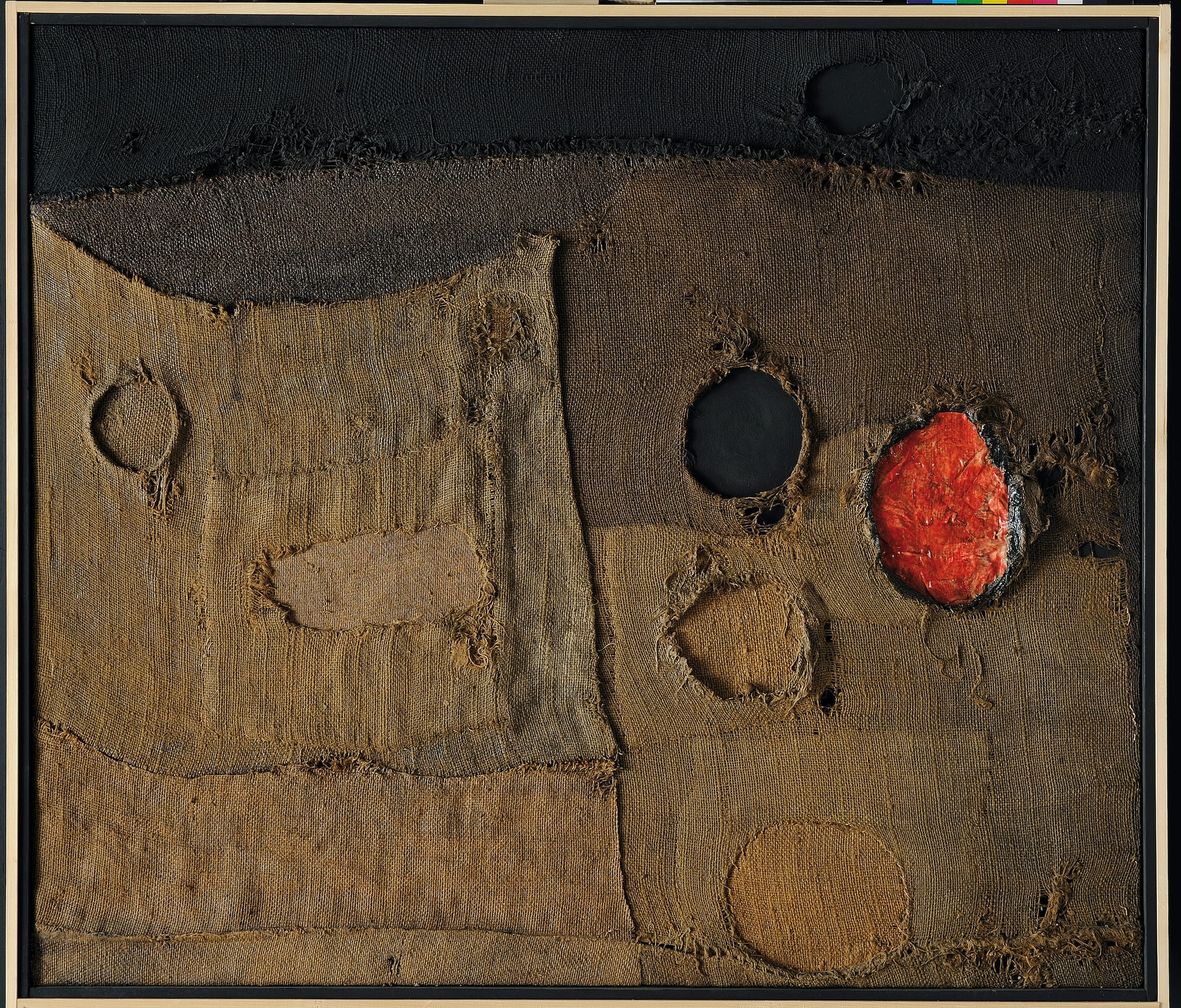 So here we have it at last: vivid evidence of the roughness and the hardship of his life. Then, in the 1950s, Alberto Burri creates a “painting" called “Sacco” (1953), made from a patchwork of sackcloth and fabric, with an emphatic red disc of oil. The Arte Povera movement takes up the saint — think of the very “poverty” of their chosen materials. Giuseppe Penone finds affinities between the life of Saint Francis and his own attitude toward the making of art, how the principles of poverty and rigor practiced by the saint allow him to think anew about his own physical presence in relation to an organic being such as a tree.