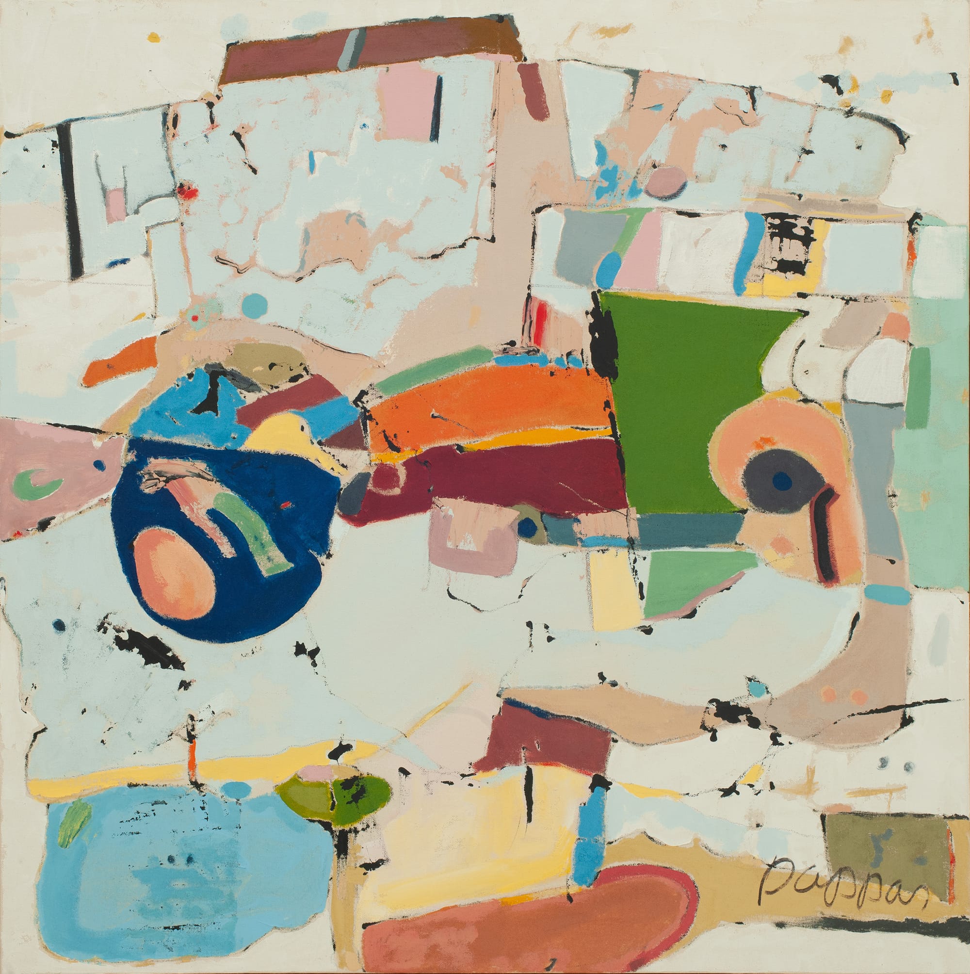 Even with a clear musical influence, Pappas invites viewers to bring their own interpretations to his work. To me, the discrete colorful forms in his paintings cohere into a fragmented image of the self. Like each composition, one’s identity has no beginning or ending; it is, rather, a continuous evolution and journey of discovery. I think about the spaces we move through to find ourselves and the ways Black identities have had to grow, change, expand, or shrink within them. Creative spaces amplify art as an outlet to construct and reconstruct our many layers freely and share them with others. For Pappas, the center was rich with the potential to show the importance of art in everyday life, to inspire young artists to pursue a professional art career, and to encourage folks to discover new facets of their creativity.