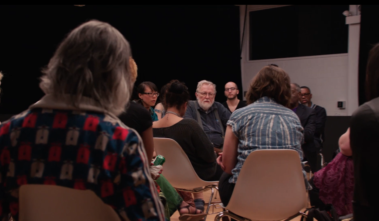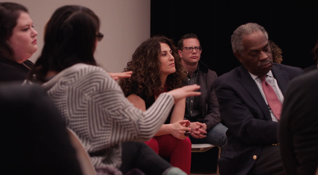 But bereft of a goal (if they were given one, it seems they’ve long since forgotten it), the exchanges revert to a circular pattern. The group members seem to have already covered the points they make in the film before; we’re only seeing them go through these ideas for who knows what time. After all, the film opens on their third day meeting together. There are vague references to people who have left the group, and some of the members present are trained facilitators rather than civilians, but it’s difficult to ascertain who is who. Outside research reveals that the setup is structured around the Tavistock model of group therapy, wherein participants help one another analyze themselves. (Ledare and his collaborators selected a group representing a broad range of ages and races.) But there is no self-actualization to be seen. Everyone is speaking across one another’s points, wanting to make their own statements in lieu of truly grappling with what anyone else says. It is a stark reminder of how, if pushed to open up intellectually, the average person can be maddeningly inarticulate. But why isn’t the method working?