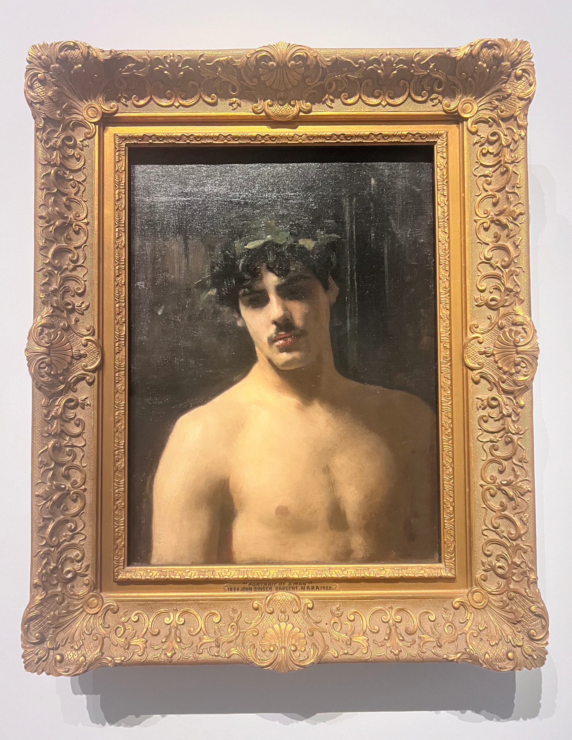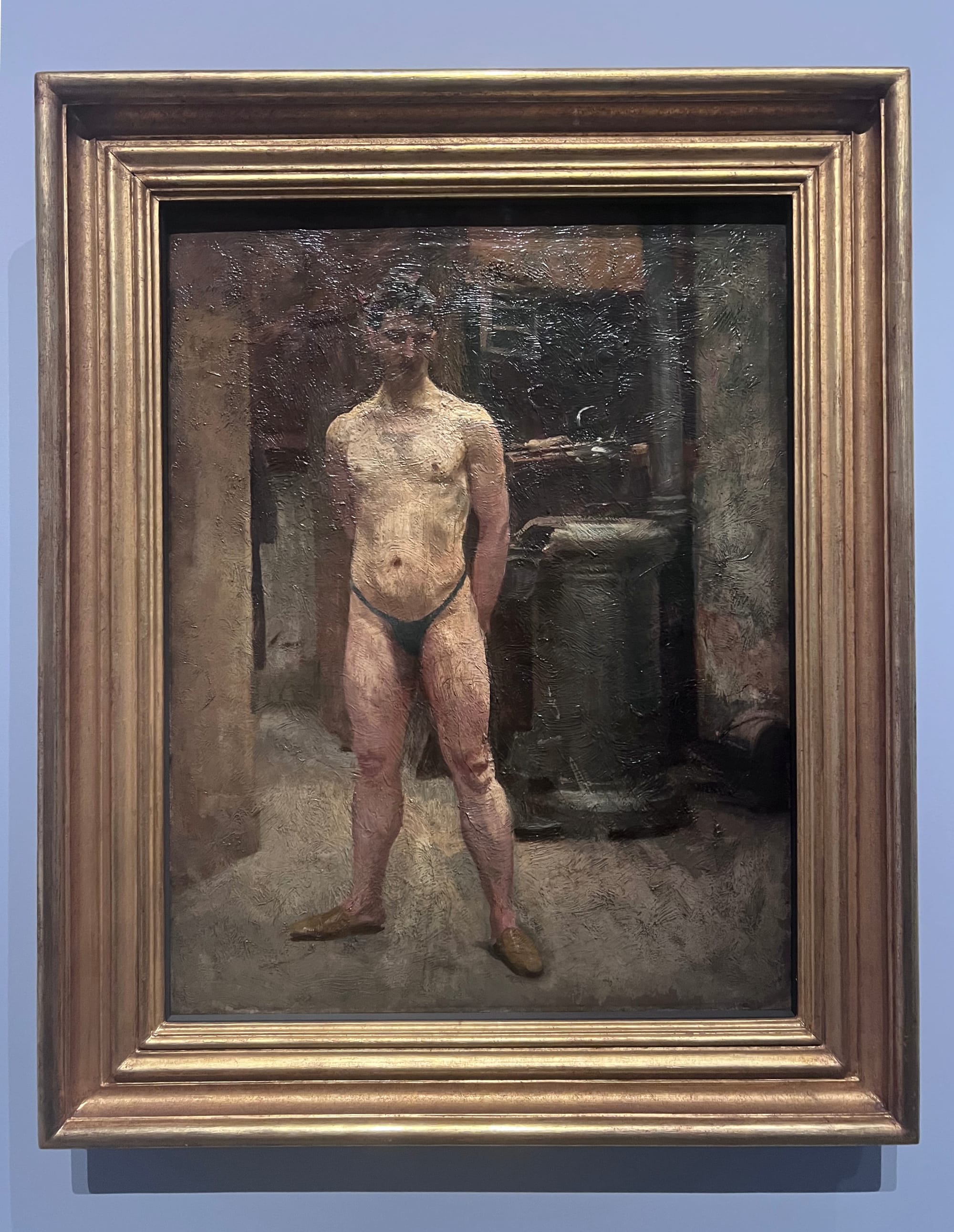 The exhibition’s structure is fairly straightforward, even a bit basic, with section titles like “In the Studio,” “Beyond the Studio,” and “Fascinating Portraits,” but the works speak for themselves. The first two sections focus on Sargent’s education, notably under the French portraitist Carolus-Duran, as well as his travels around Europe and North Africa. Even in these early years of adulthood, the hallmarks of his talent begin to show. Though his copies and academic drawings, such as “The Dancing Faun, After the Antique” (1873–74) are stiff, lacking that living spark, paintings like “A Male Model Standing before a Stove” (c. 1875–80) are imbued with human specificity. The model’s body is unidealized, with protruding ribs and a slight paunch; he gazes at the floor, as if deep in thought. Notably, Sargent depicts the screen behind which the model changed as well as the stove he used to stay warm, emphasizing that this is a real person in the world, a quality that persists in later portraits.