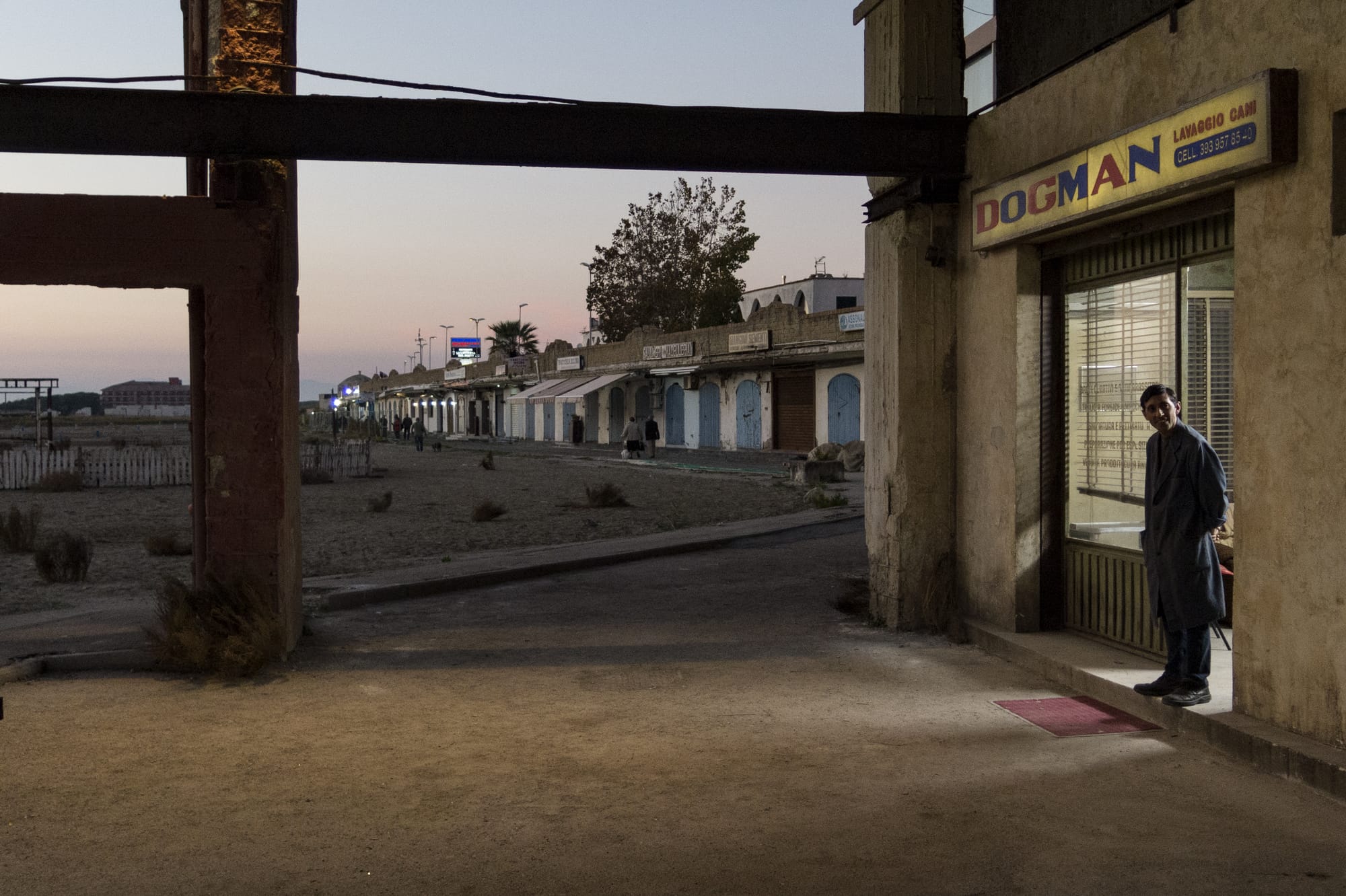 Such abandon and seedy ruin mark the filmscapes of Matteo Garrone, whose Dogman premiered in New York on April 12. Opening with a shot for the canine ages (the crime drama nabbed the “Palm Dog” at Cannes), a dazzling white pit bull lunges his jaws at dog groomer, Marcello (Marcello Fonte), the film’s good-hearted protagonist. “Amore!” Marcello, seemingly half the animal’s size, sings. “Easy, sweetie. I’ll give you a shampoo ….” As he lathers the massive mastiff with a mop from a yard away, their kenneled companions watch with a mix of what looks like curiosity and pity. Moments later, the same creature is basking in the warmth of a blow dry, transformed from vicious to hilariously indulged.