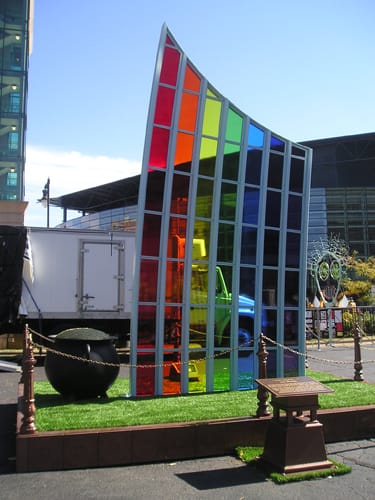 In a broad sense, color is everywhere. In a more specific sense, the ordered rainbow color scheme is everywhere. I came to ArtPrize with my own rainbow-colored piece, so it’s probably my rainbow colored glasses that gave me this distinct focus.