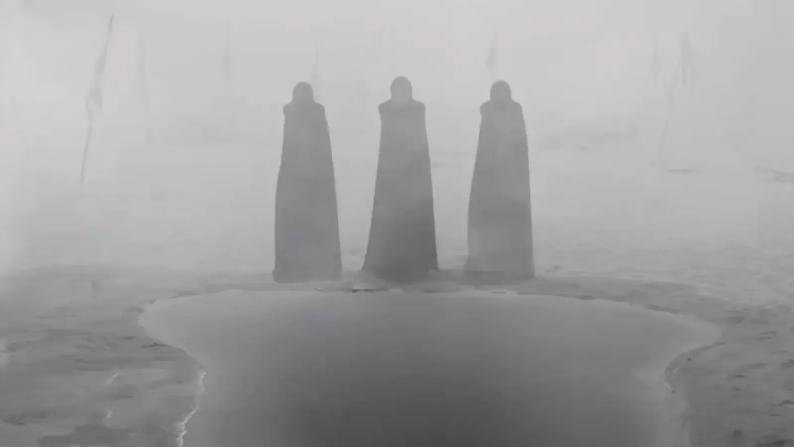 This is a nifty trick on Coen’s part, linking his Macbeth to a particular cinematic tradition while highlighting the theatrical aspects of the source rather than attempt to make Shakespeare overtly "cinematic." The staging has a similar effect. There is no ghost of Duncan except when the camera is embodying Macbeth’s point of view. There is no cauldron except in the very moment Macbeth seeks out the witches for a second prophecy, and it disappears as soon as he hears what he wants to. There is no grand shot of Birnam Wood approaching Macbeth’s castle that a more self-conscious director hoping to “ventilate” the play might include.