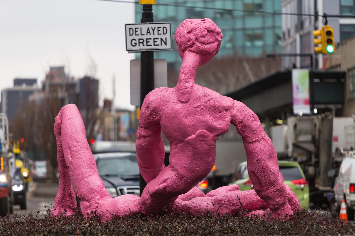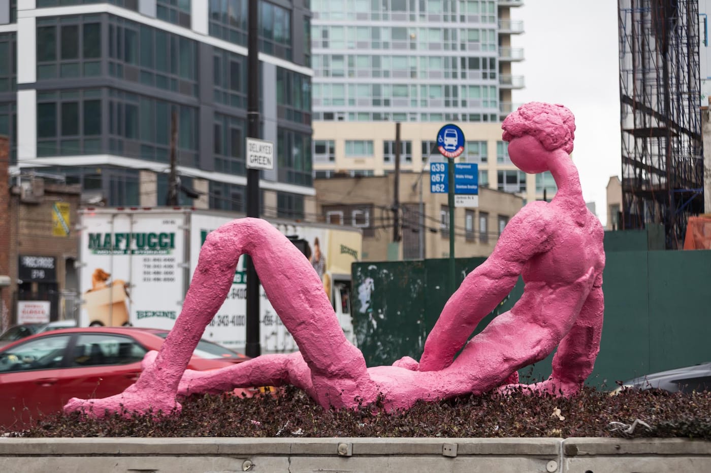 This ambiguous sunbathing humanoid is endowed with neither gender nor age. Its dimensions approximate the chassis of a Fresh Direct delivery truck. It’s made of about 400 pounds of bronze. It looks like something a pre-schooler might construct out of hot-pink pipe cleaners, magnified a millionfold.