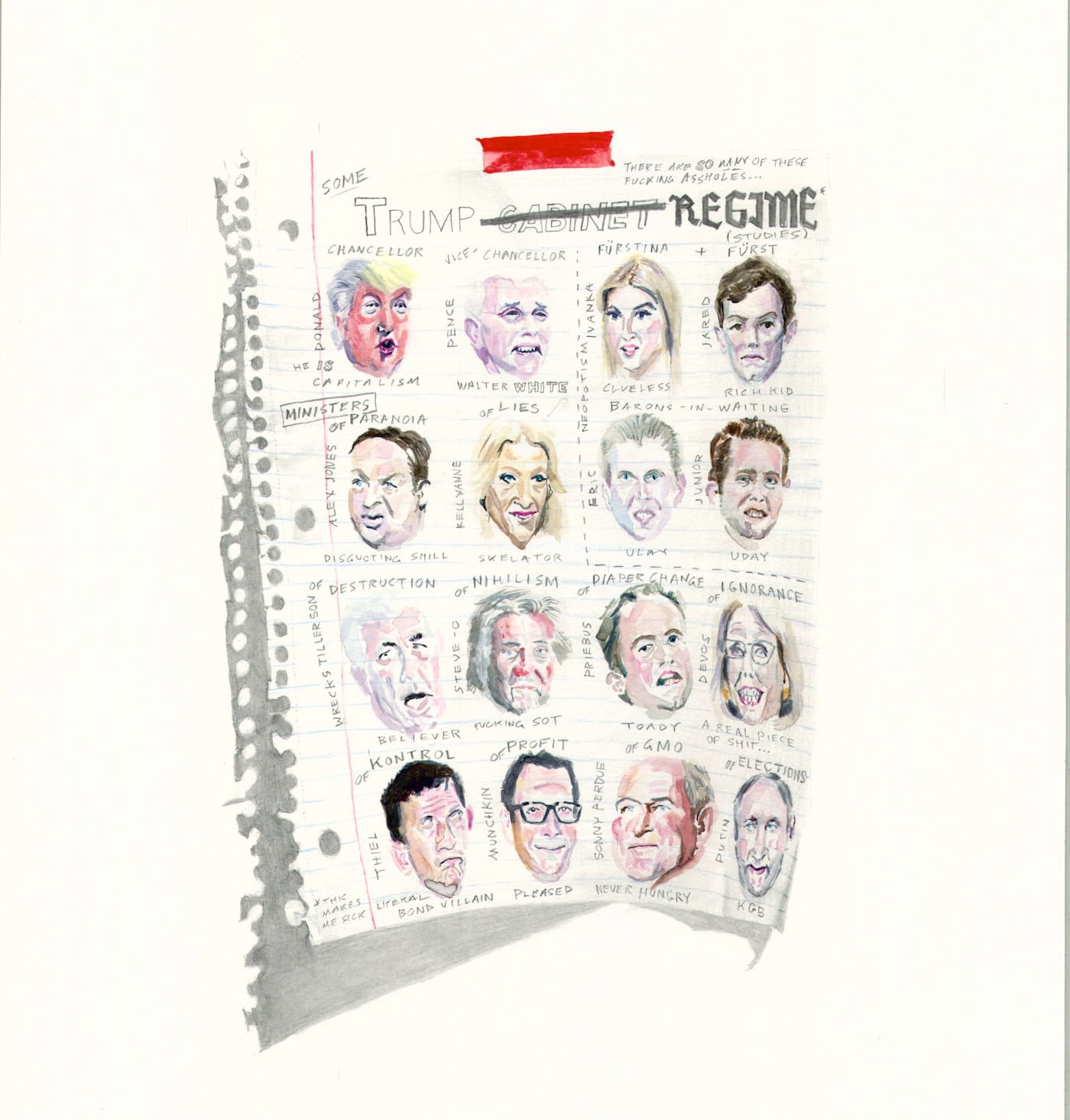 I don’t know what good this particular drawing serves as ‘political art.’ For me, it was a frustration-sink of anger over the nepotism, cronyism, and self-dealing represented by Trump’s regime. On a constructive level, the drawing was sold for $2,000 to benefit Smack Mellon, but that feels like a small gesture. Part of me wishes that non-profits didn’t have to spend so much time and energy fundraising. If we can’t have a well-funded National Endowment for the Arts, then it would make economic sense for state and city governments to spend more on culture. If New York City could commit 1% of its budget to the arts, it would go a long way to furthering socially equitable living and working conditions for artists, as laid out in the People’s Cultural Plan.