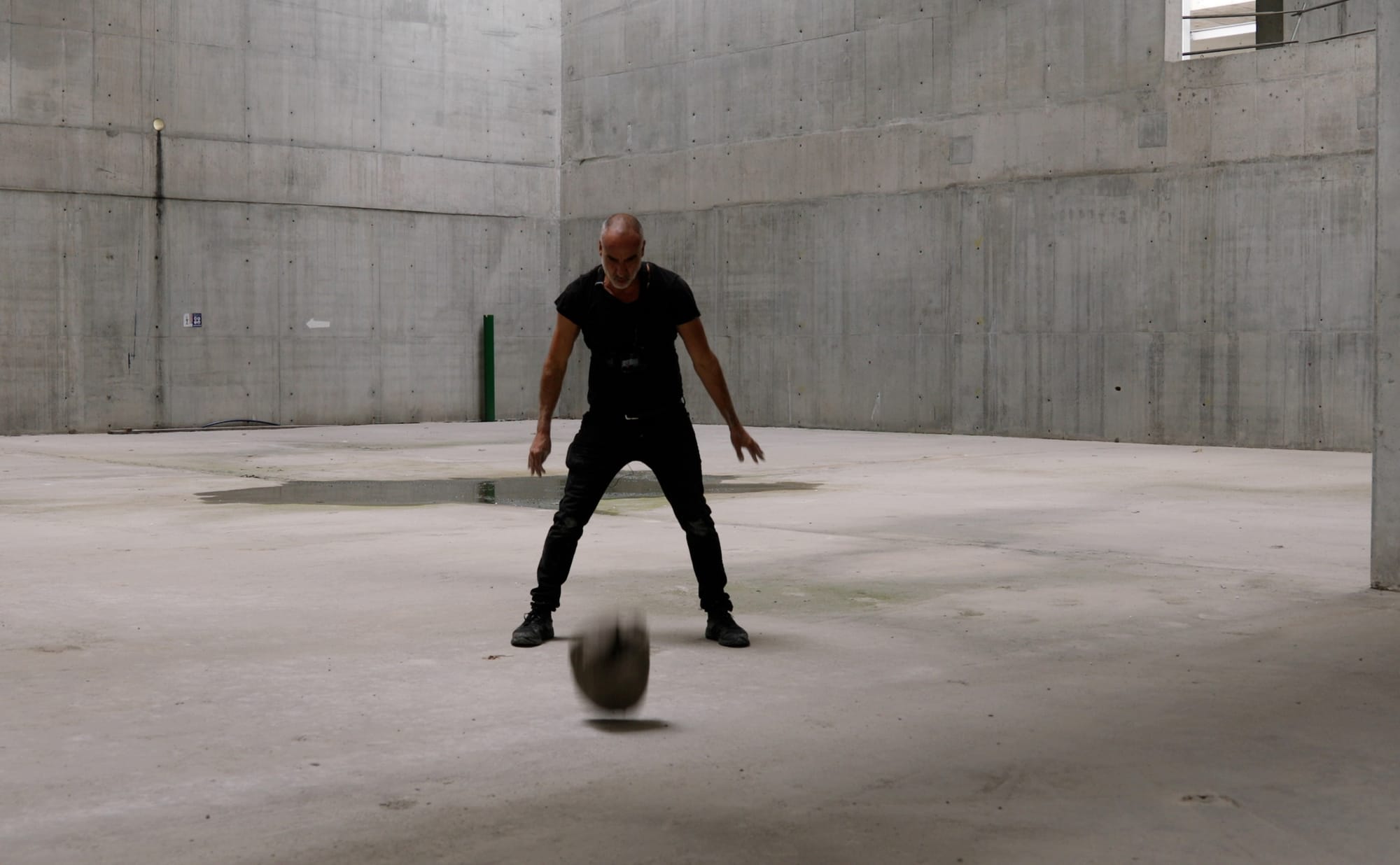 Fernando Arias, one of Colombia’s most politically incisive artists whose work often grapples with the relationship between armed violence and official narratives, directly addressed this issue in his ongoing project Memoria blanda (Soft memory). In 2023, Arias gained access to the construction site of the museum and carried out a performance in which he walked around the vaulted exhibition rooms, throwing heavy pieces of clay onto the floor. Chosen for its malleability when fresh and its brittleness when dry, as well as its ability to register impressions of the world around it, the clay raised clouds of dust in the air and splattered water from puddles as it was battered into new shapes, illustrating how easy it is to manipulate memory.