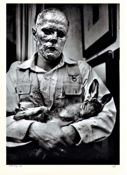 In 1965, on opening night of a show of Beuys’s drawings at Galerie Alfred Schmela in Düsseldorf, the artist locked his guests out of the gallery. Inside, his face painted with honey and gold leaf, one foot wrapped in felt and the other wearing a shoe with an iron sole, he held a dead rabbit in his arms, leading a private three-hour tour of the exhibition, endeavoring to explain his works to the lifeless animal. “Even a dead animal presents more powers of intuition than some human beings with their stubborn rationality,” Beuys said during the performance. “How to Explain Pictures to a Dead Hare” would become one of Beuys’s best known actions.