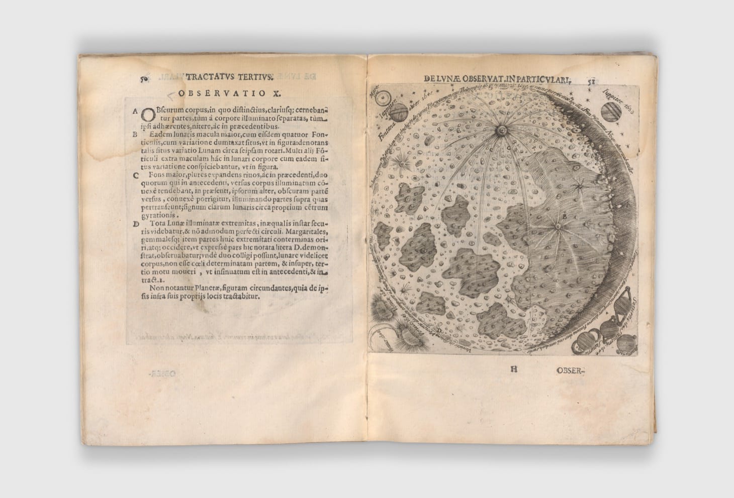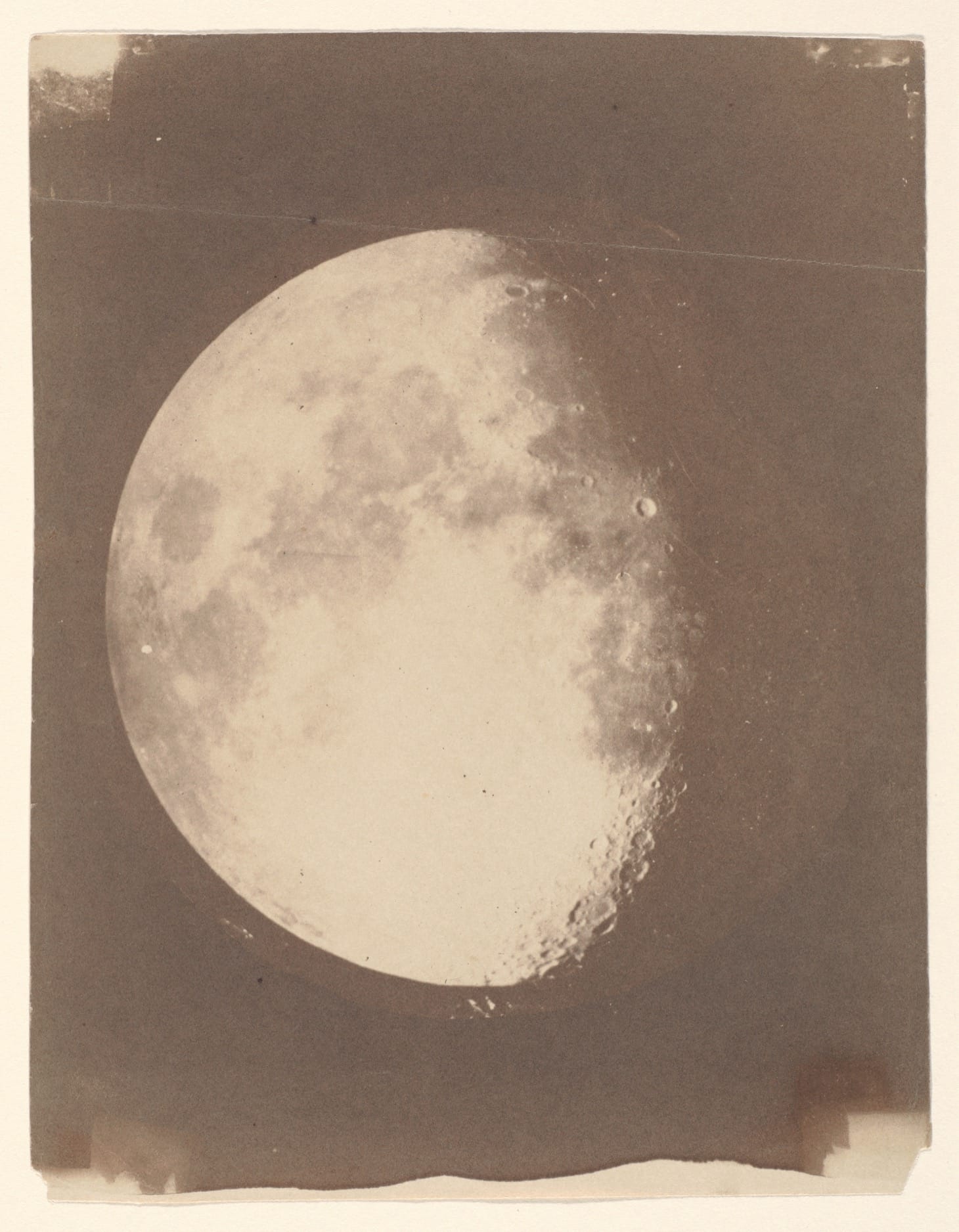 The last of these is featured in a new exhibition at the Metropolitan Museum of Art, Apollo’s Muse: The Moon in the Age of Photography, commemorating this summer’s 50th anniversary of the first Moon landing. I imagine it presents an uncommon curatorial challenge to mount such an extensive show on a single subject, especially one as literally quotidian as the face of the Moon. The exhibition, which actually begins before the age of photography with Galileo’s Sidereus Nuncius, solves this problem in part by reconstructing the sense of dispossession that must have been felt on viewing the earliest astronomers’ hand-drawn reproductions of the lunar surface as it appeared through their telescopes. The drawings bear essentially no resemblance to any feature of the Moon on view in the sky, a disjunction hardened by the fact that the astronomers may have had no real, physical conception of what they were seeing.