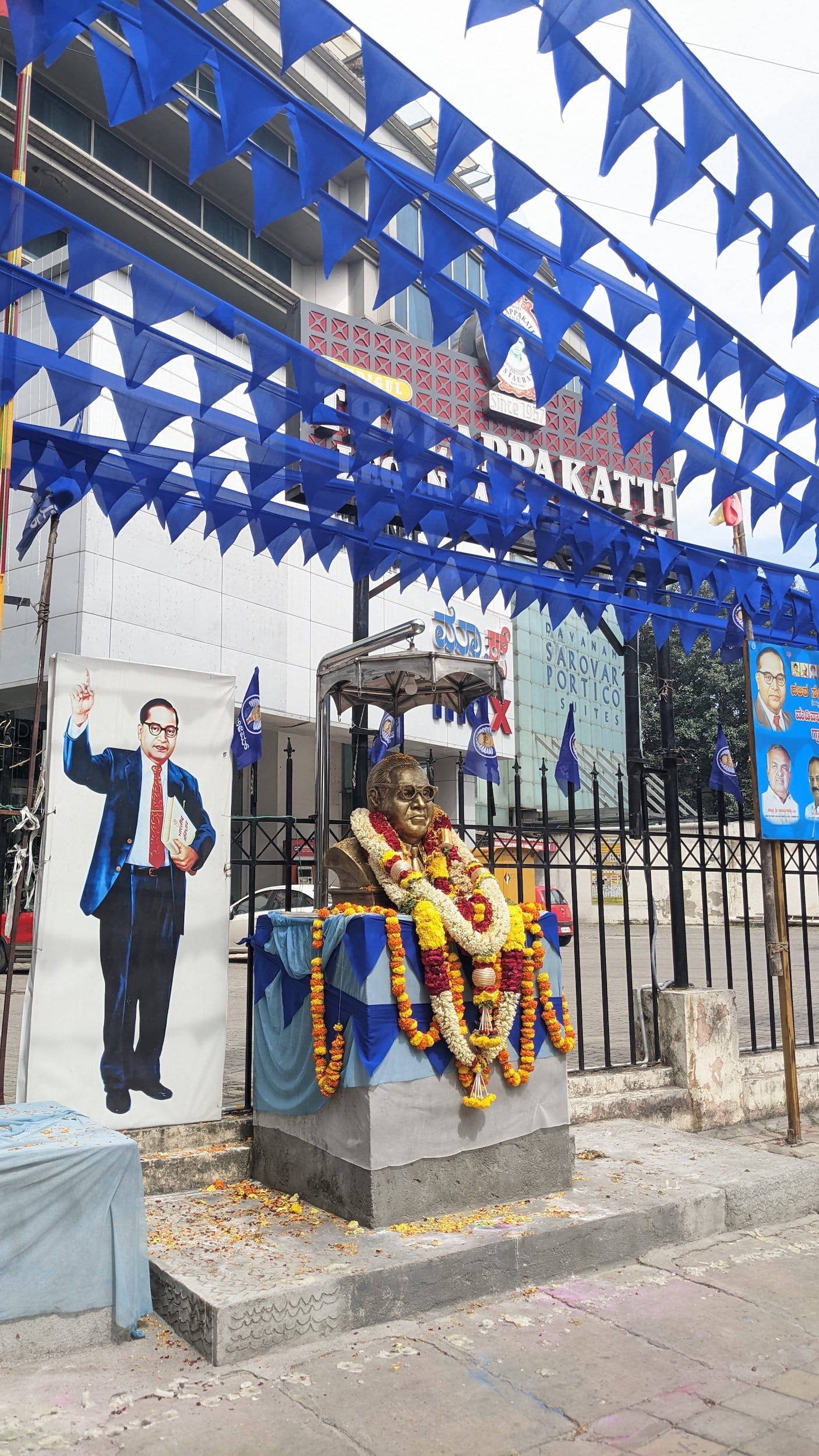 The heavily unregulated business of public art in Indian cities is often the outcome of community efforts. This is true in the case of film stars and statues of the author of the Indian constitution, B.R. Ambedkar. “Since Ambedkar is a Dalit icon, his statue is found in economically [oppressed] areas. These statues are typically made using concrete with barely recognizable iconographic details. In poor neighborhoods, the Ambedkar statue becomes a talisman of identity for people living in the areas” Kashi explained.