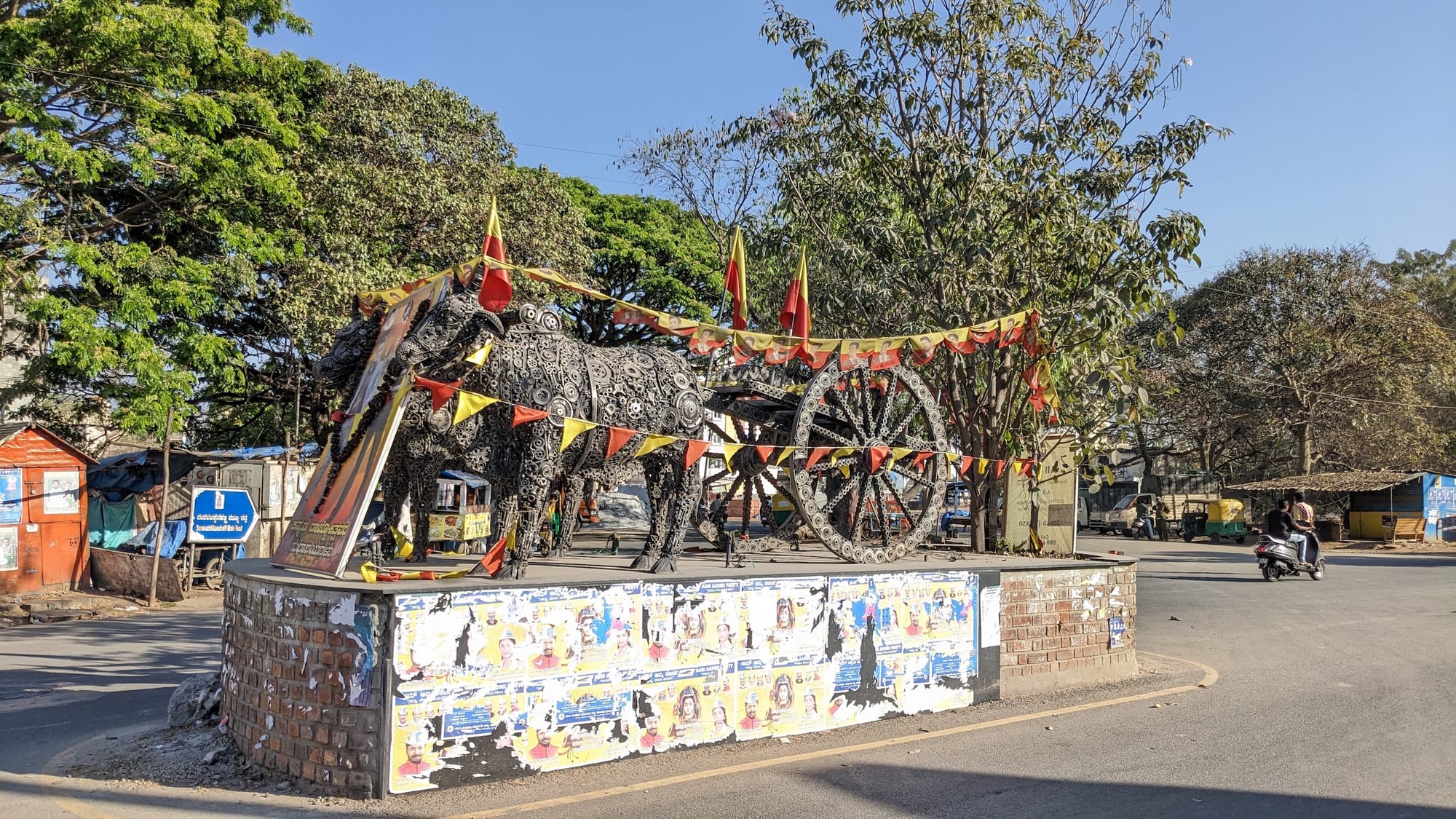 The rise in nationalism also manifested in the ways some figures are portrayed, as in the case of the city’s founder. “Bangalore is not an old city, it’s only as old as the Americas,” Rao said. “We don’t have a pantheon of figures to eulogize, and [Kempe] Gowda was never seen as a soldier or waged any wars. He was just a chieftain of a small town and the earliest of his statues depict him as a very demure figure. But today he’s riding a horse and wielding a sword in his statues. It’s probably because he’s treated as an icon to exhibit Kannada identity and to gain political mileage.”