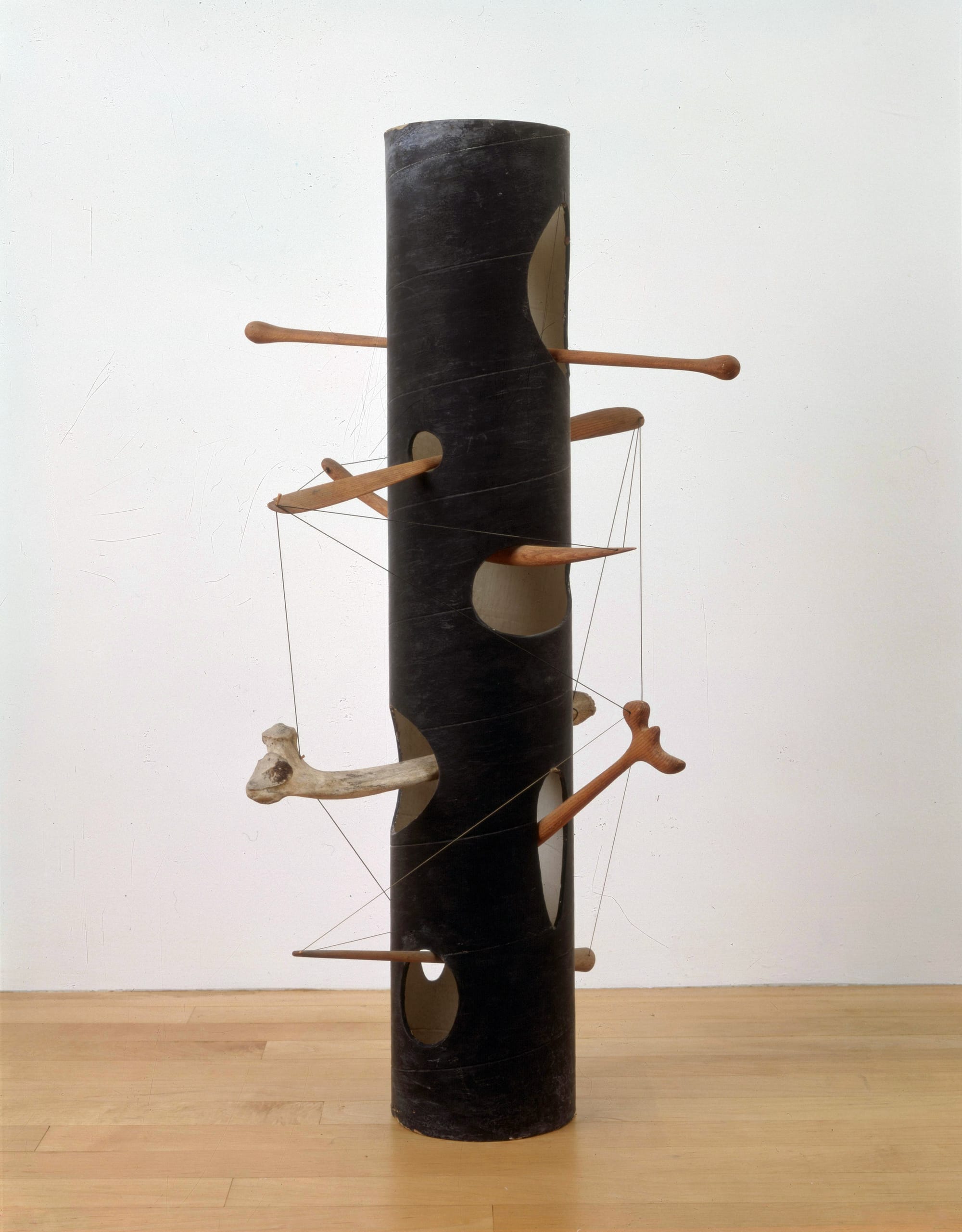 Noguchi’s experience at Poston marked him for life: even when he was selected to represent the US at the 1986 Venice Biennale, he wondered loudly why a person like him, from a community that had been put into camps during WWII, was now suddenly seen as “American.” His incredulous response to the biennale invitation signaled the lasting impact that the imprisonment of Japanese Americans in that time had on him. Life at Poston was harsh: the desert conditions, tar paper barracks, limited funding for food, and barbed wire fences are echoed in a sculpture called “Monument to Heroes” that he created in 1943, the year after he left Poston. If “Floor Frame” heightens our sense of the contrast between roots and canopy, or between things seen and unseen, “Monument to Heroes” harnesses and expresses the reality of what it means to be a war hero: It means death.