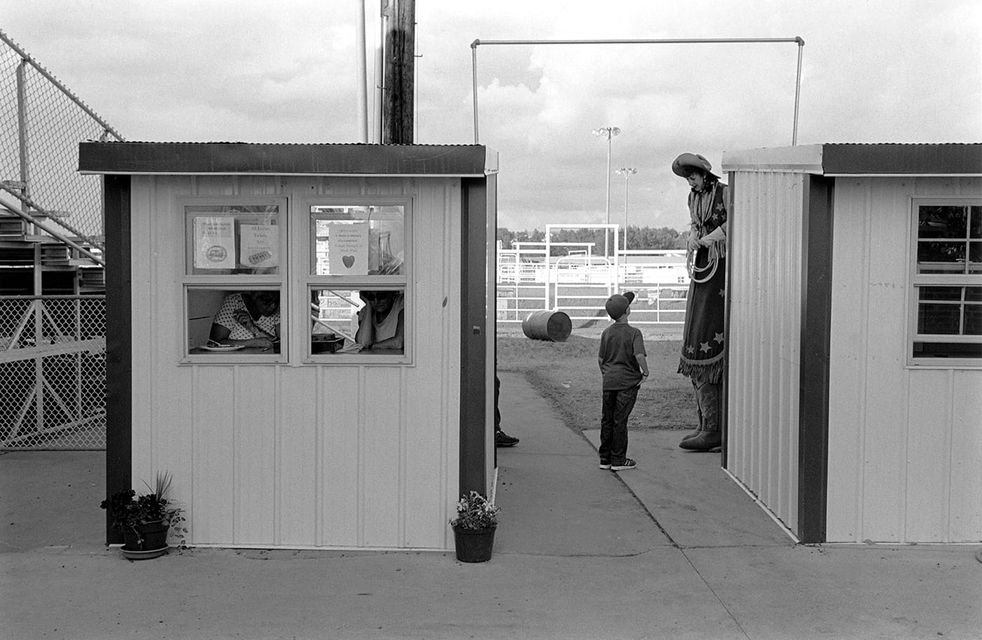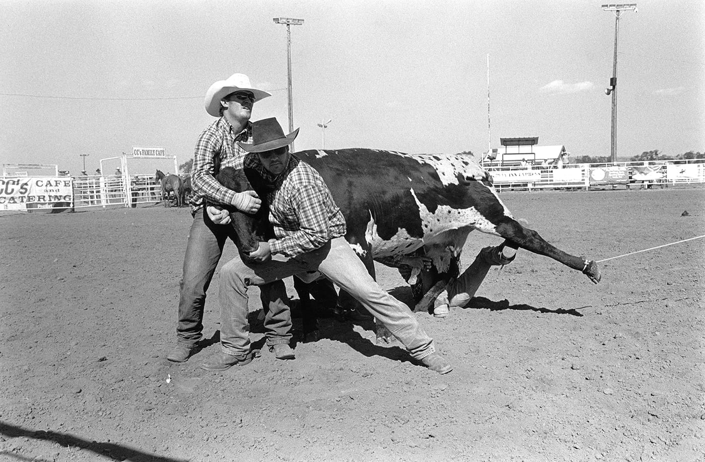 The out-of-frame action is that of a rodeo, that quintessential convocation of Western folk and their animals, which serves as a locus for the social and historical vibes that Kayafas captures in many of his photographs.