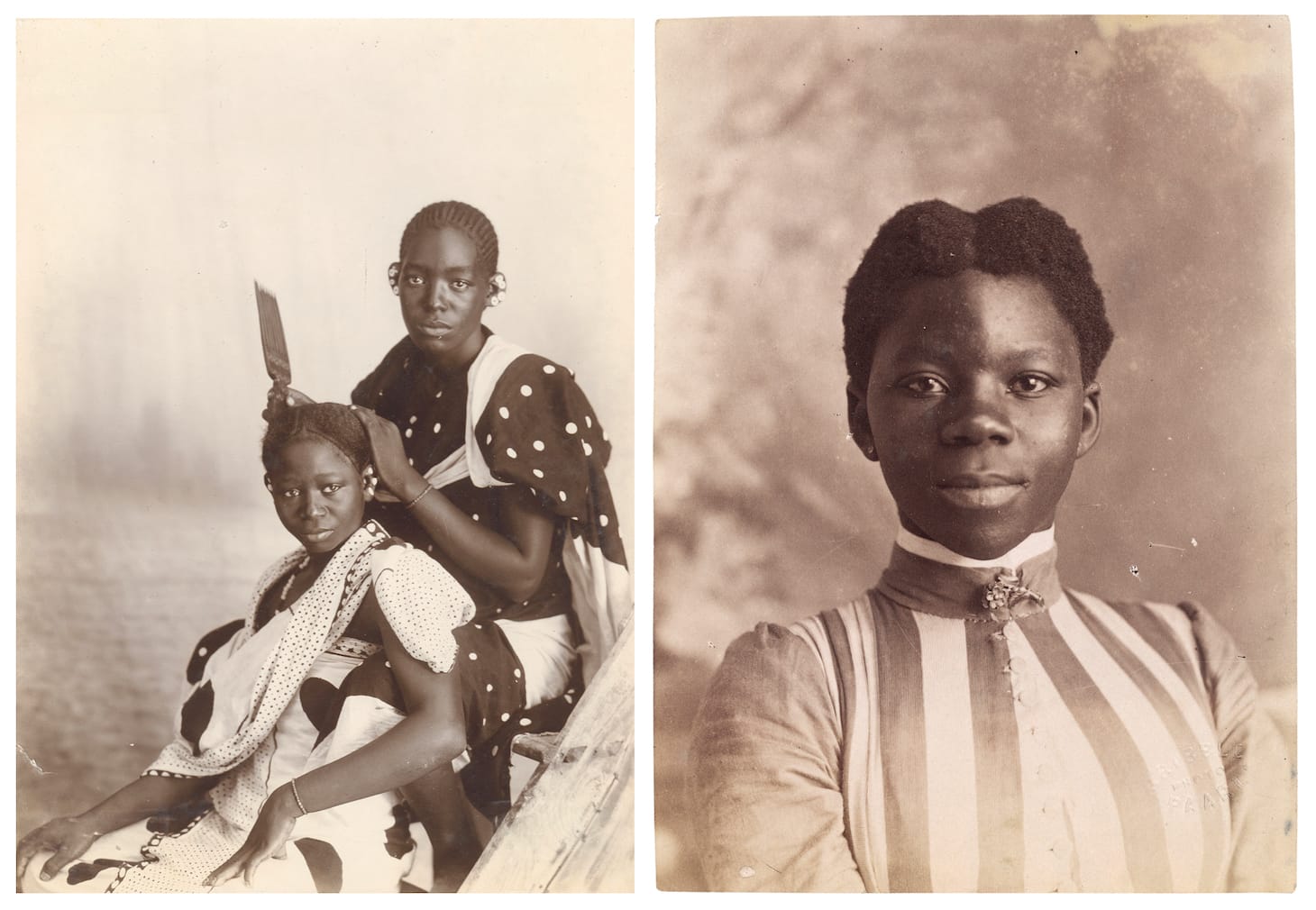 While the beginning of the exhibit features images made mostly by white male photographers, the specific images Colard has chosen convey a subtle yet subversive undercurrent of resistance emanating from the sitters. With a look in their eyes or a turn of the head these women seem like they have chosen exactly how to display the masks that they know are required of them. Take for example a portrait of a young South African woman by James Gribble II: the photographer lights her face so half is in shadow while half remains bright, yet it’s the look in her eyes that holds your attention. Dressed in a Victorian era gown with her hair coiffed, she projects a regal, all-knowing aura.
