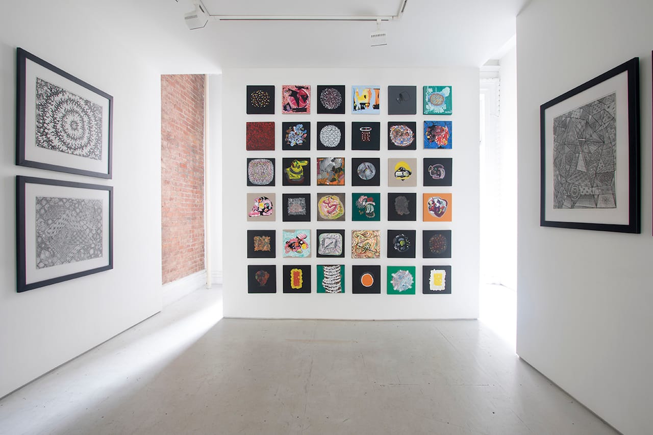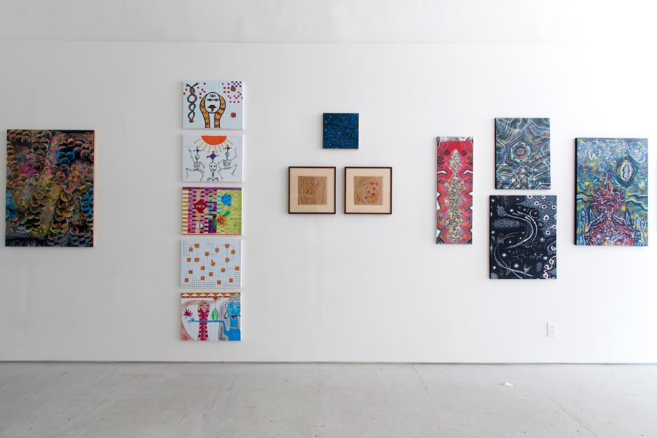 Foye has brought together an unlikely group of artists based on their shared interest in figures such as Belson and Smith; have also explored alternative systems to apprehend as well as transcend reality. It is a complex subject largely shunned or trivialized by the art world. Fittingly named after late David Bowie’s final studio album, Dark Star reminds us that a number of artists have chosen other options besides those touted by mainstream institutions and their all-too-predictable forms of conventional perception, which emphasizes the immediately understood, self-contained image. In contrast, the work in Dark Star is layered and full of details, which often culminate in an optical buzz, a heightened or hallucinatory perceptual state. Formally speaking, there is a tension that never resolves itself between the whole work and its myriad parts, which forces the viewer’s attention to continually refocus.