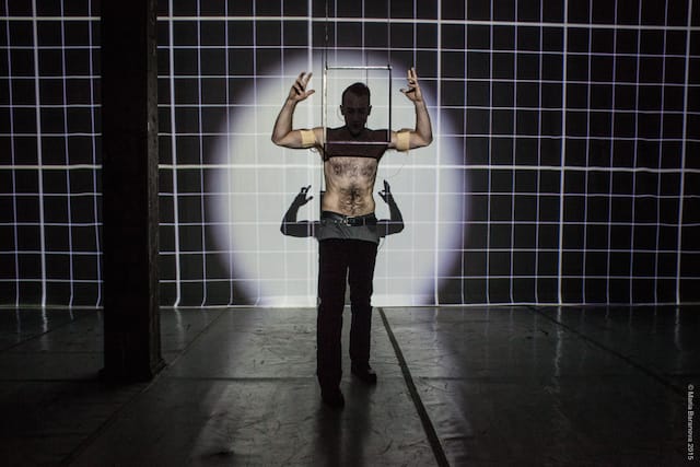Wooster Group alumnus Andrew Schneider’s YOUARENOWHERE, part of COIL and presented at The Invisible Dog Art Center in Brooklyn, stood out for its intelligence and precision. Schneider’s trademark is performance technology, and here he made excellent use of the powers of computer programming to create live theater.