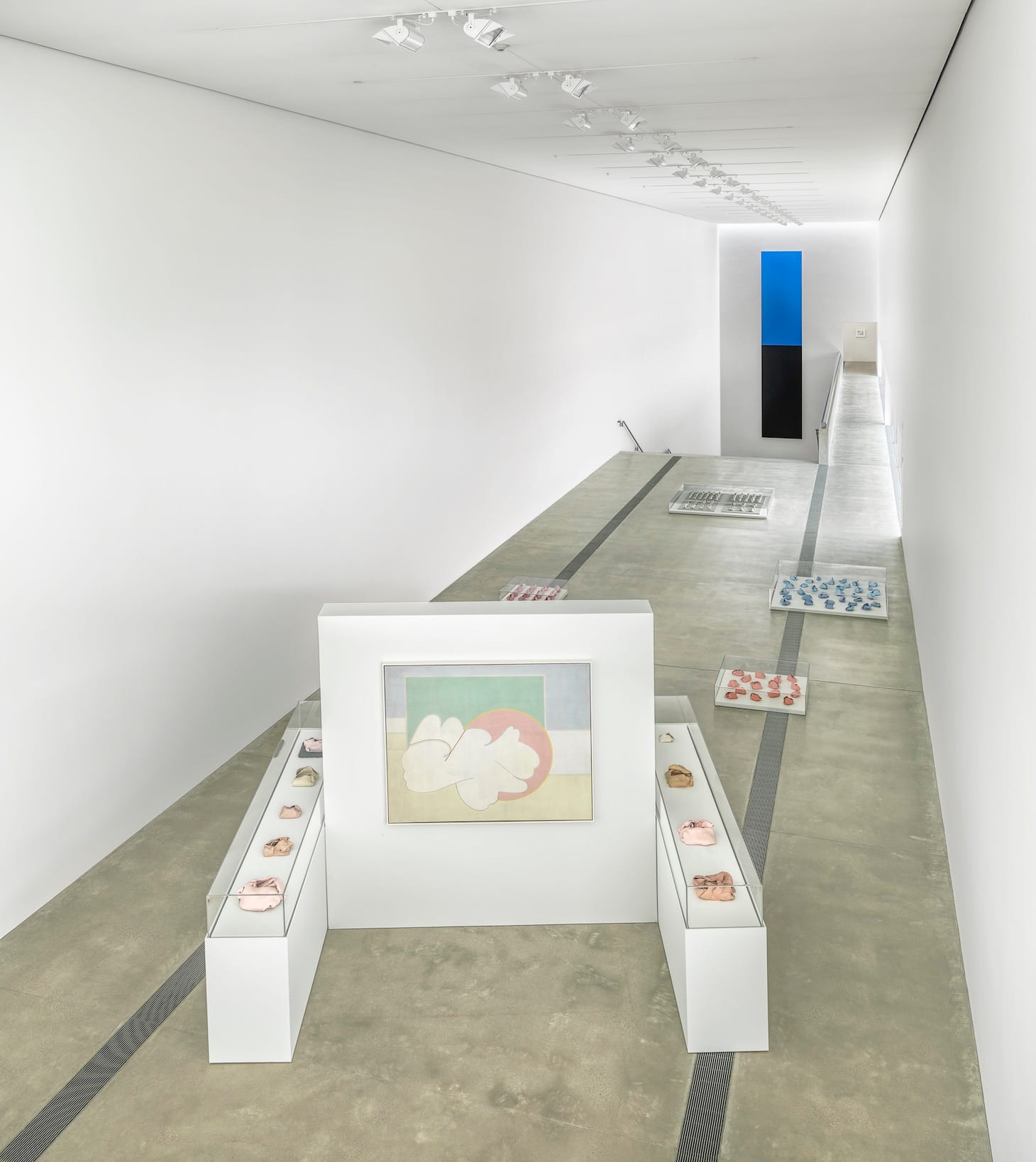 A few steps away from her more abstract artscape, Wilke’s more sexually graphic and overtly political work takes on new resonance. Tucked behind (and in tension with) a towering masculine totem by Ellsworth Kelly, on permanent view at the Pulitzer, two galleries focus on Wilke’s 1970s output. Fourteen varicolored gum sculptures peek out from small Plexiglas boxes — resembling at once the vagina and the tip of a penis. Affixed to an assembly of vintage postcards of famous international monuments — the Coliseum, Lincoln Memorial, West Point — kneaded erasers folded into similar genitalia suggest the absence of women in places of power.