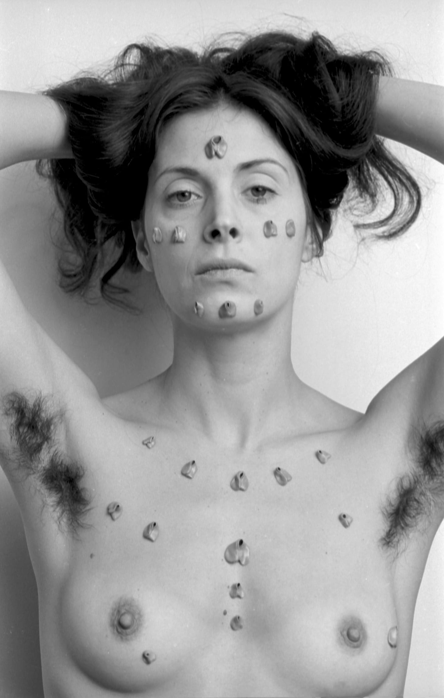 “[W]omen must take control of and have pride in the sensuality of their own bodies and create a sensuality in their own terms,” wrote Wilke in 1976, “… without referring to the concepts degenerated by culture … to touch, to smile, to feel, to flirt, to state, to insist on the feelings of the flesh, its inspiration, its advice, its warning, its mystery, its necessity for the survival and regeneration of the universe.” If the concepts of survival and regeneration feel a touch lofty for a woman of wily pin-up poses, it’s worth asking: why expect anything less?