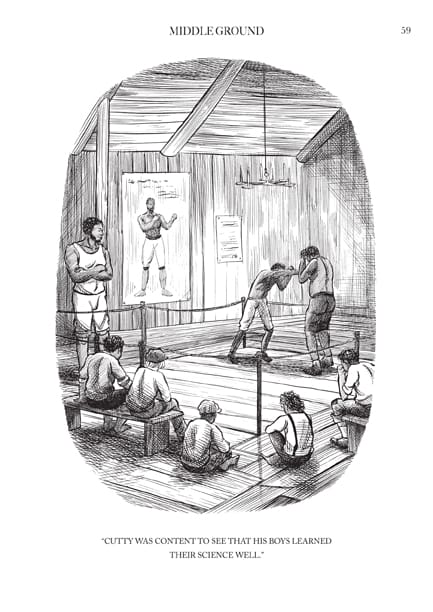 In comparing The Wire to a Dickens novel, the scholar-narrators write that Ogden “never descend(s) into the divisions of ‘lovable rogues’ and purely evil villains of which Dickens makes such effective use.” However, without these clear-cut divisions of good and evil, neither can prevail, and lasting change is virtually impossible. This notion is explored in the chapter “The Middle Ground,” in which the narrators equate the contained violence of the boxing ring with the hellish, legalized drug zone called Hamsterdam (a mispronunciation of Amsterdam) — a confined area of bombed out buildings designed to corral the drug trade, an experiment created by a cop pressured to lower murder stats in his district. “Perhaps we are never meant to triumph,” they write, “but rather to accept that triumph will never come… that the darkness of our deeper selves will never be defeated, instead it will only ever be contained.”