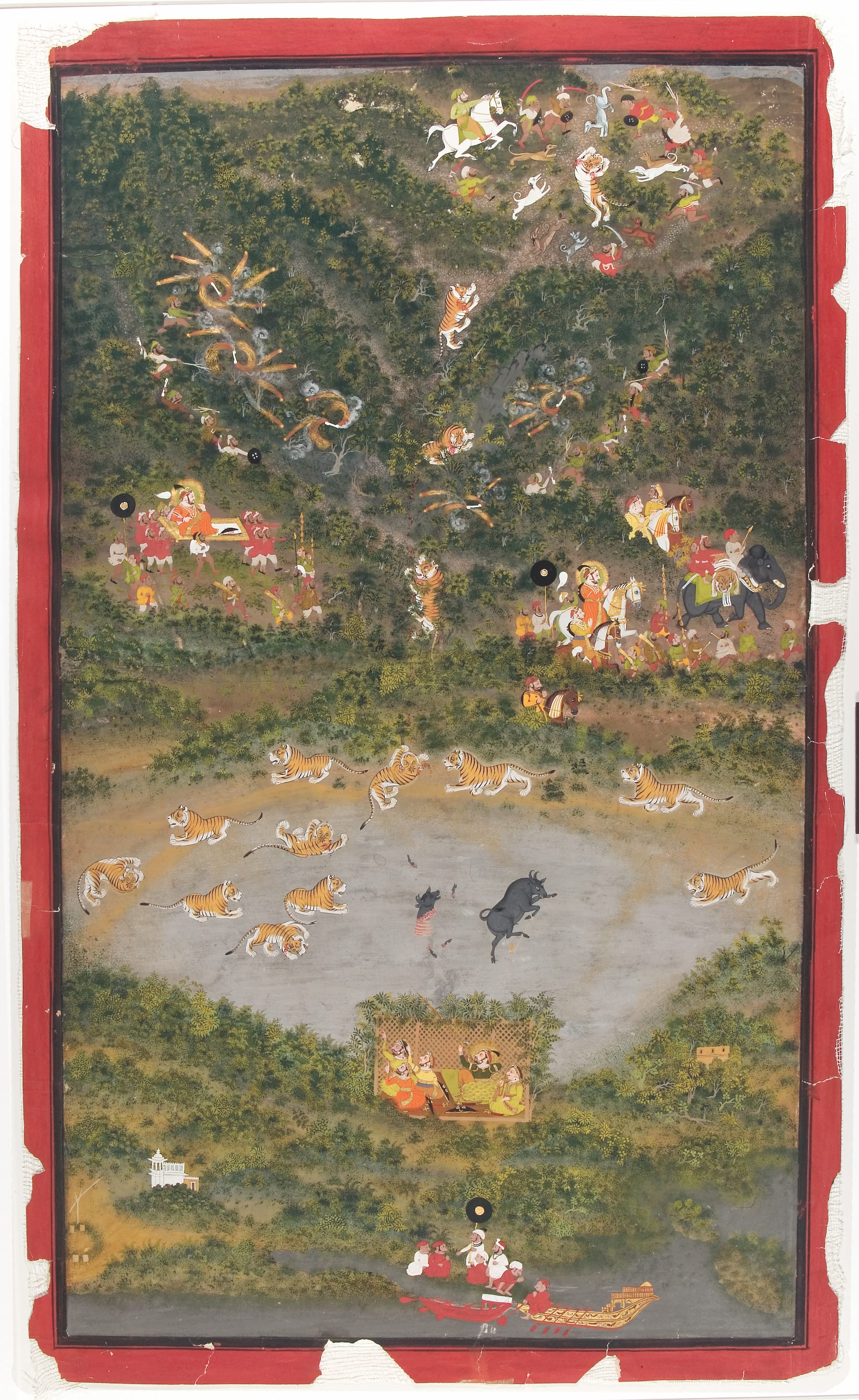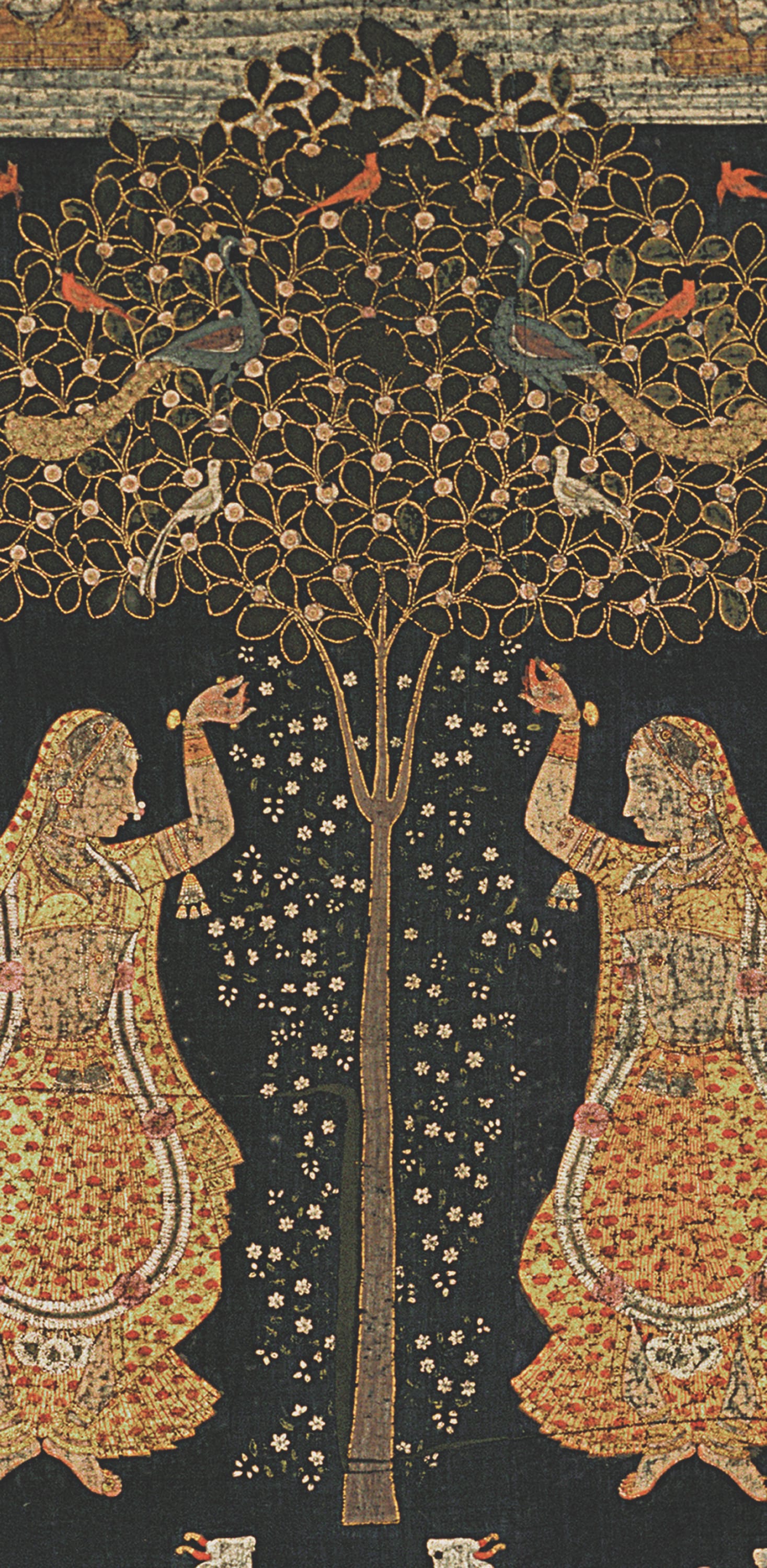 The book contains 33 plates of artworks sourced from various museums worldwide, and referenced in essays traversing the realms of miniature painting, carpets, Kashmiri shawls, Islamic calligraphy, Bhagavata Purana illustrations, and more. Goswamy's thoughts frequently situate him at the intersection of Rajput, Mughal, and British colonial-era art and culture. Reflecting the luminosity of beetle-wing pieces in miniatures, he illuminates the distinction between Mughal and Rajput painting with respect to their representation of time: while the former relies on the Islamic understanding of time as linear, the latter draws from the cyclical, elastic nature of time in Hindu culture, and thus a particular figure might make multiple appearances within the same work.