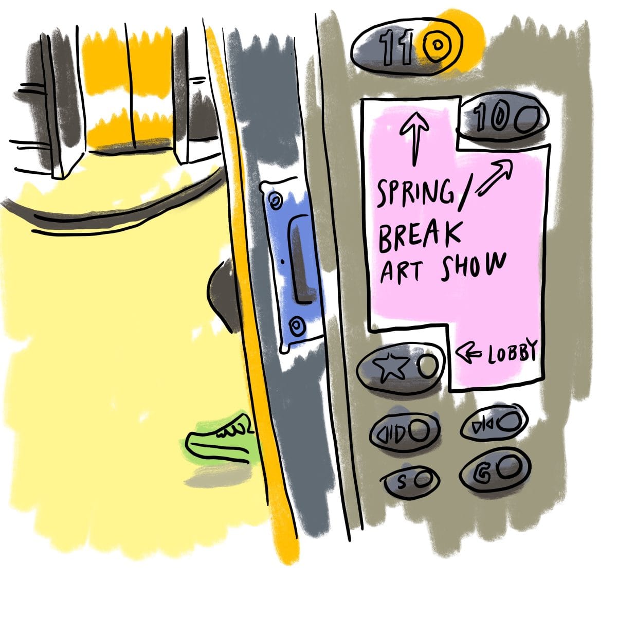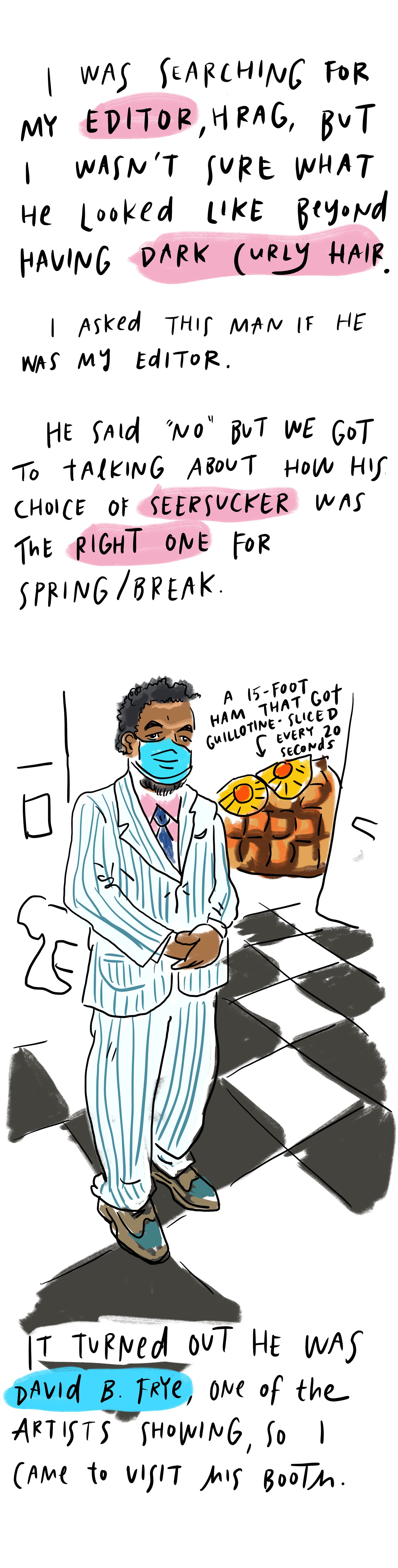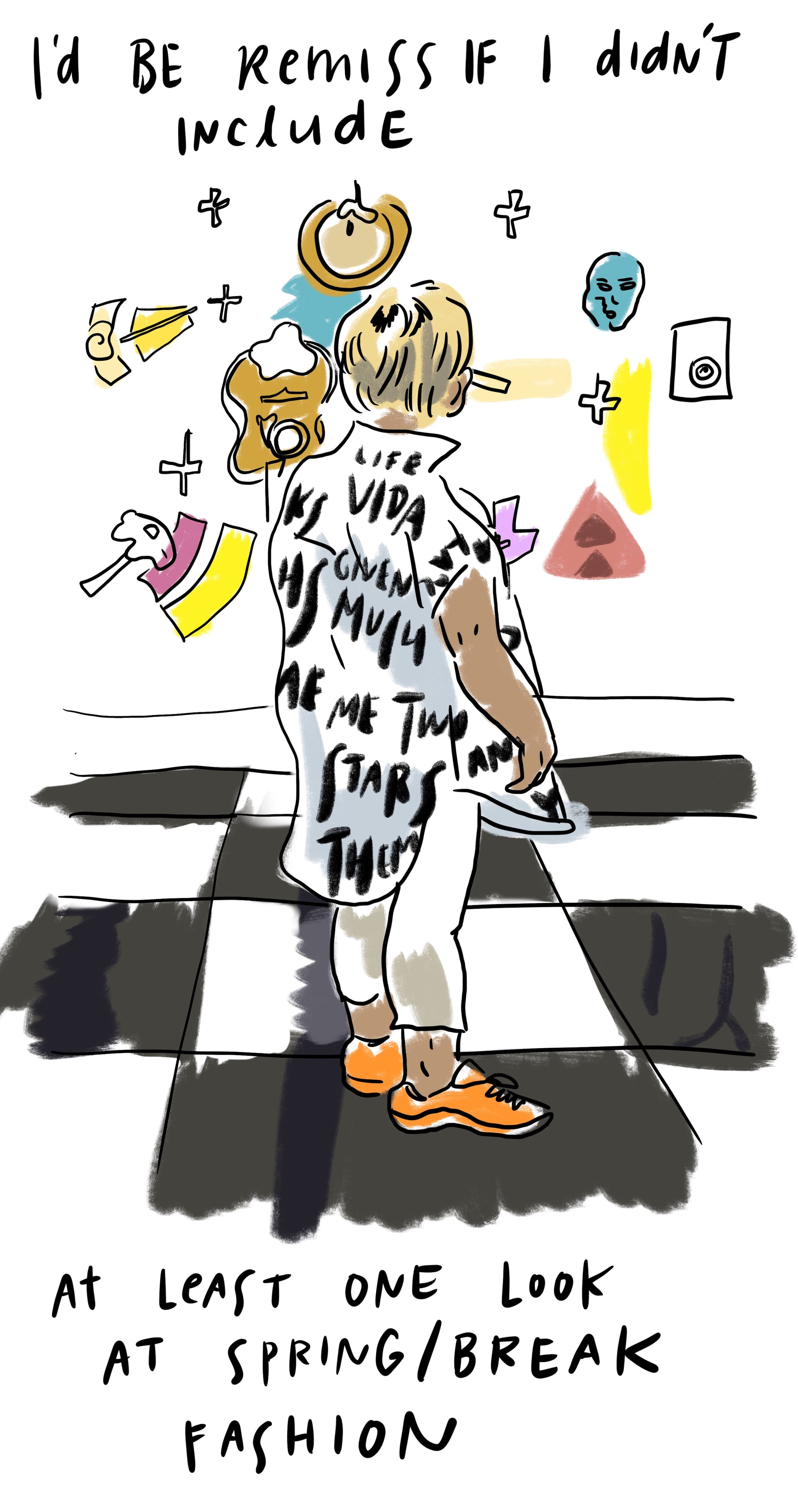 A comic artist strolling through Spring Break spots a seersucker suit, spiders, and a giant sliced ham, among other curiosities.