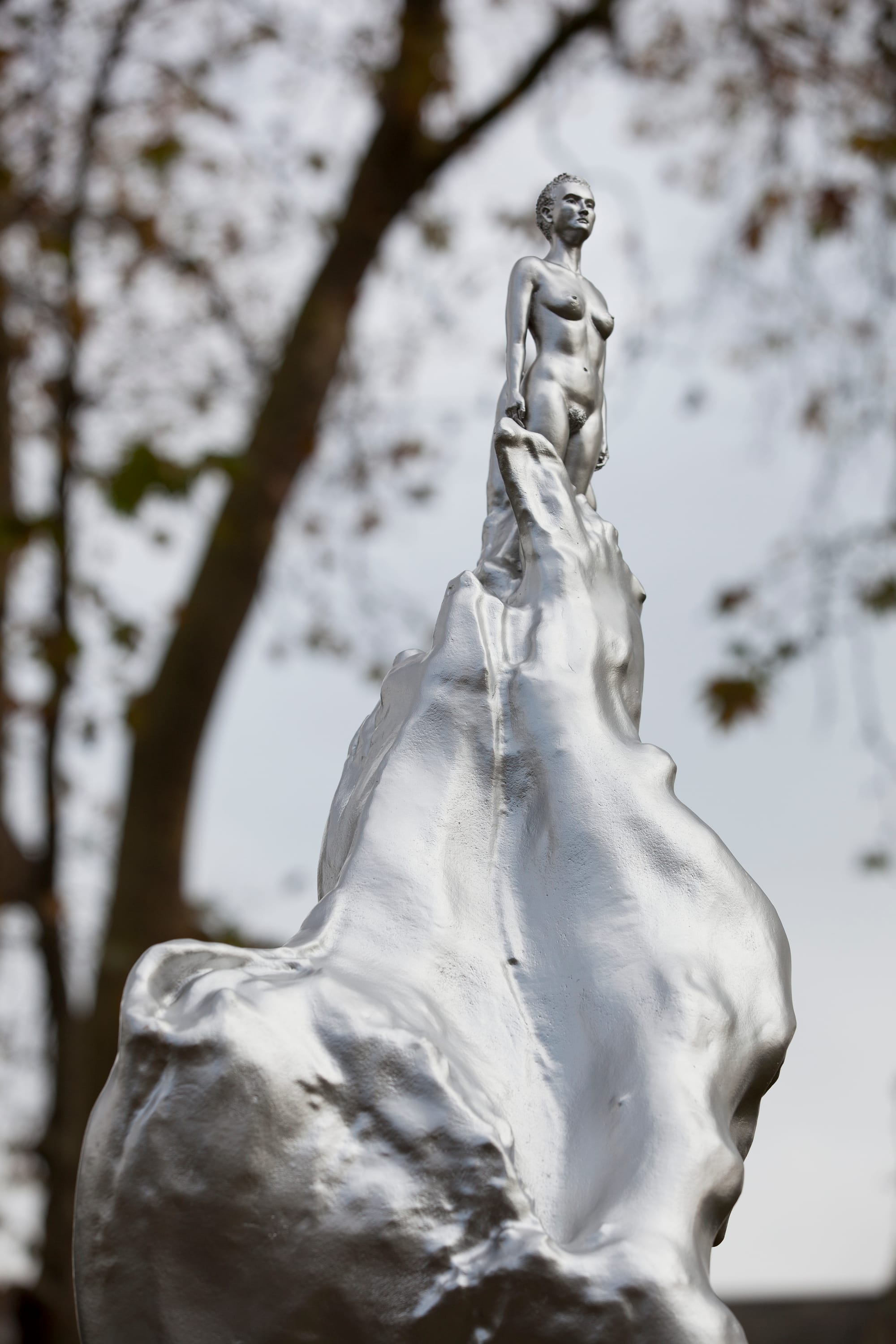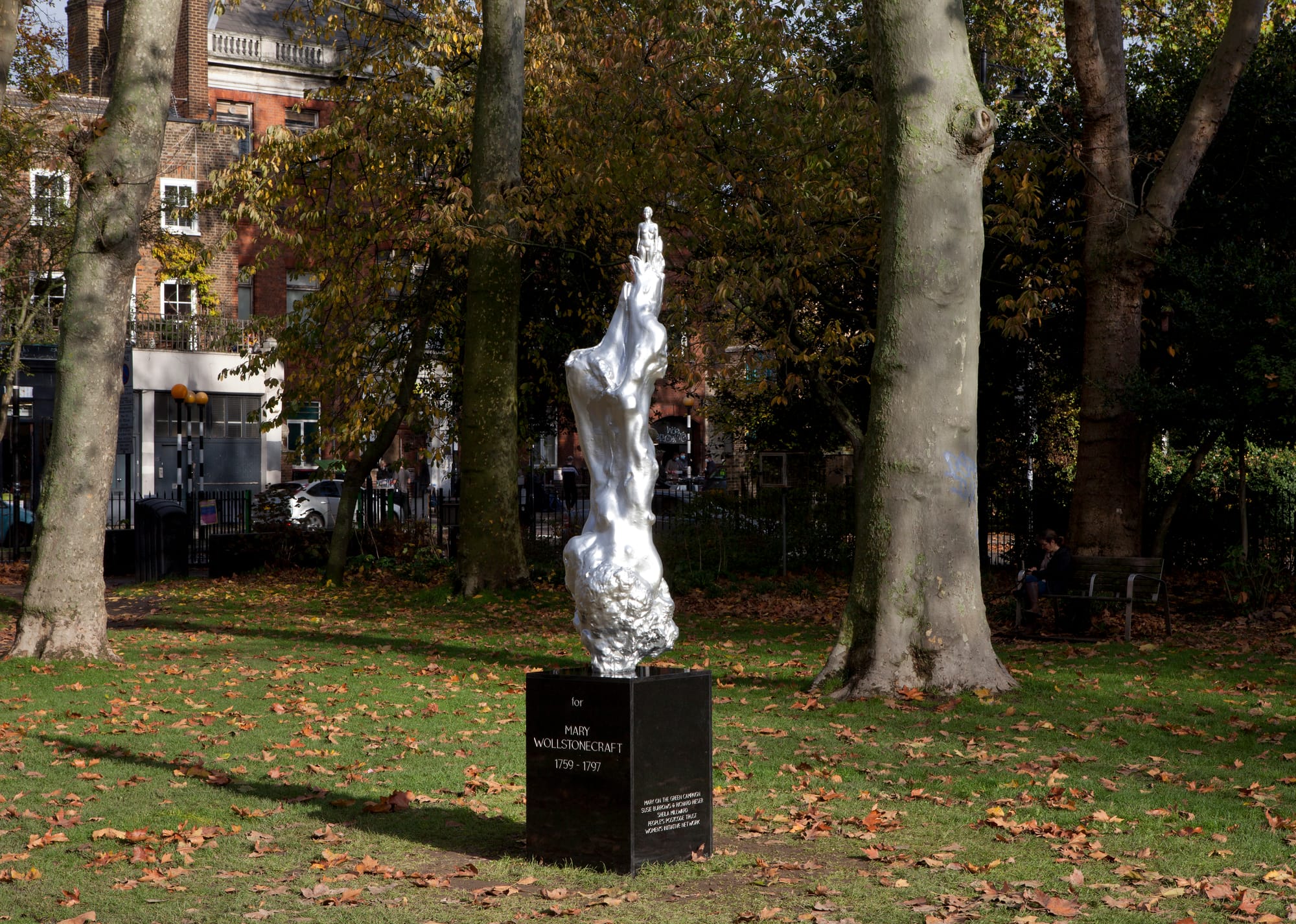 Created by British artist Maggi Hambling and cast in silvered bronze, the sculpture depicts a small figure of a nude woman emerging from a tree trunk-like amalgamation of abstracted female forms. Inscribed on its base is a famous citation by Wollstonecraft: “I do not wish women to have power over men, but over themselves.”