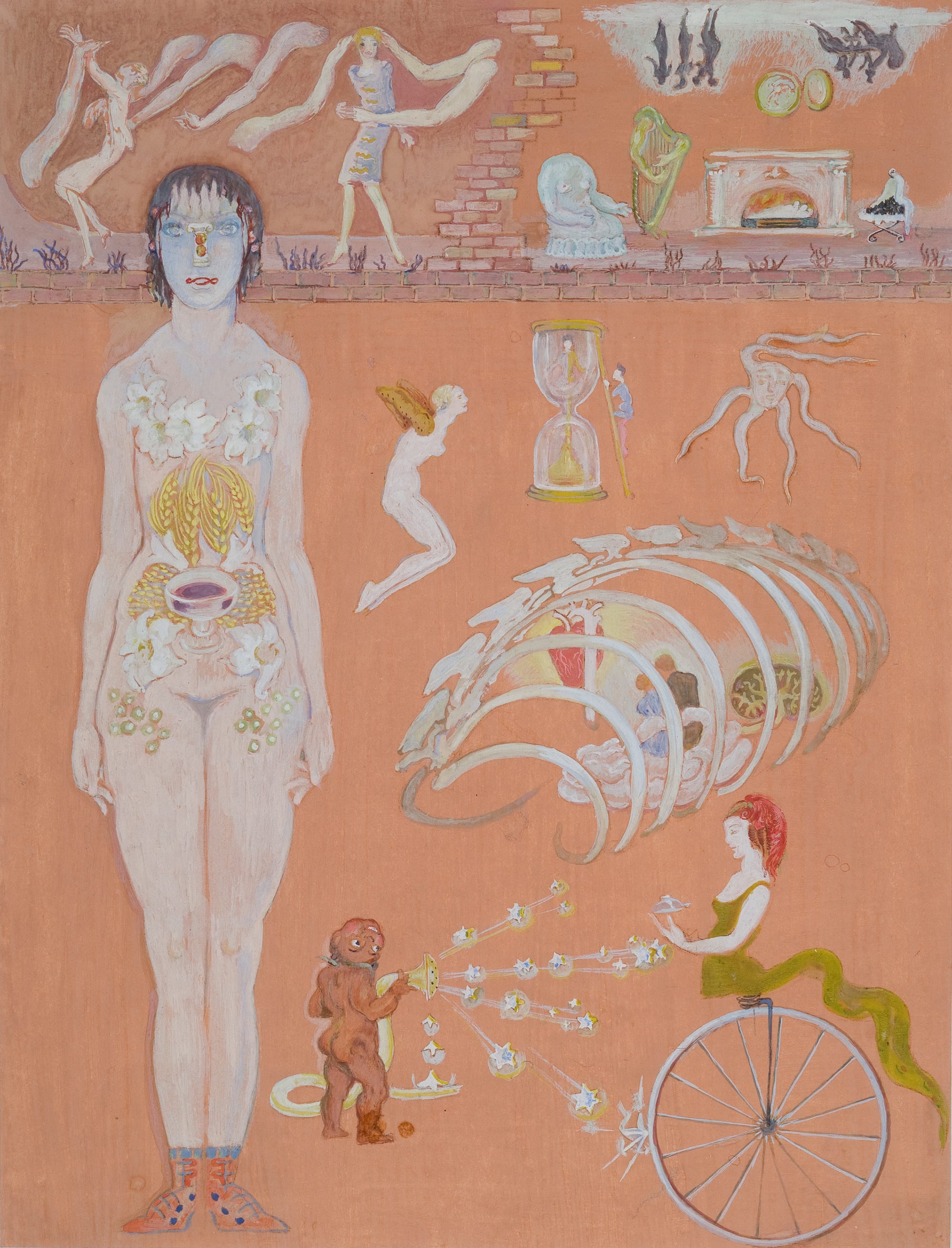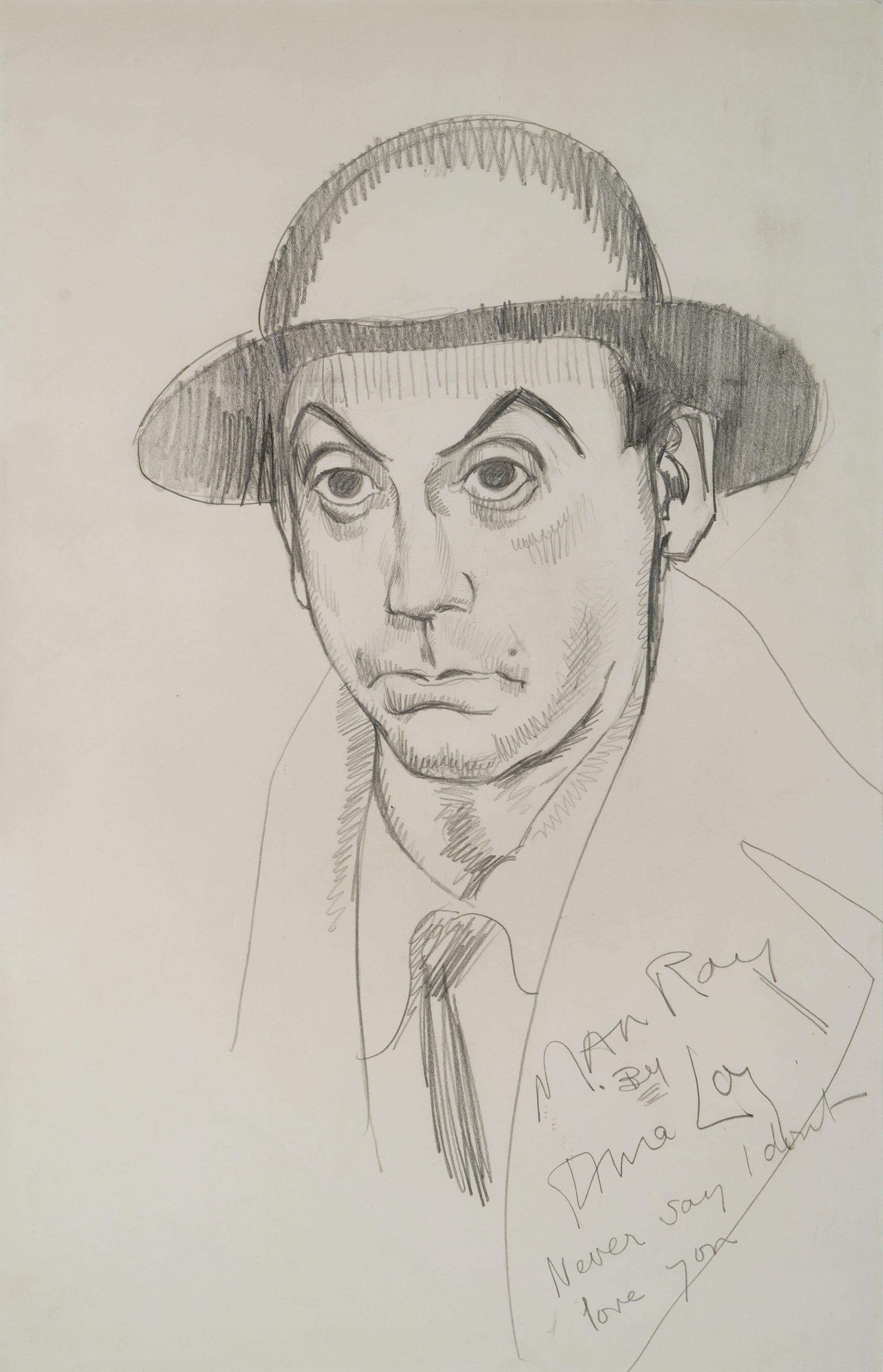 Born Mina Gertrude Lowy in London in 1882 to a Jewish immigrant father and a conservative English mother, the artist spent much of her life defying her restrictive Victorian roots. Loy’s pursuit of art was in itself a rebellion: Her mother would destroy the artist's childhood drawings and poems as a sort of punishment. Loy gave birth to four children by three fathers, none of whom served as long-term co-parents. She made ends meet by making custom clothes and hats, opening a lampshade design business, serving as a European representative for her son-in-law Julien Levy’s New York gallery, among other jobs.
