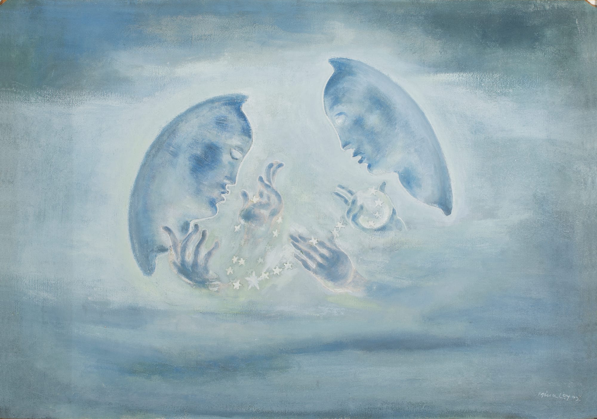 “Unlike many in her cohort, Loy was financially and socially secure for only brief periods, a fact that gave the choices she made in her life an essential precarity; she was always inventing survival tactics,” Lauterbach notes in the book. Nonetheless, Loy had a rich cultural life in the 1920s, traveling to destinations such as Florence, New York, and Paris. The book gathers examples of her sensitive pencil portraits on paper, as well as a number of fascinating archival materials that trace her commercial and artistic successes. Though Loy didn’t exhibit frequently, a high point came in 1933 when she showed a number of ethereal, ciel-colored paintings of mysterious celestial bodies at Julien Levy Gallery in New York. A number of these works are beautifully illustrated in the book, and are said to represent her complex spiritual views.