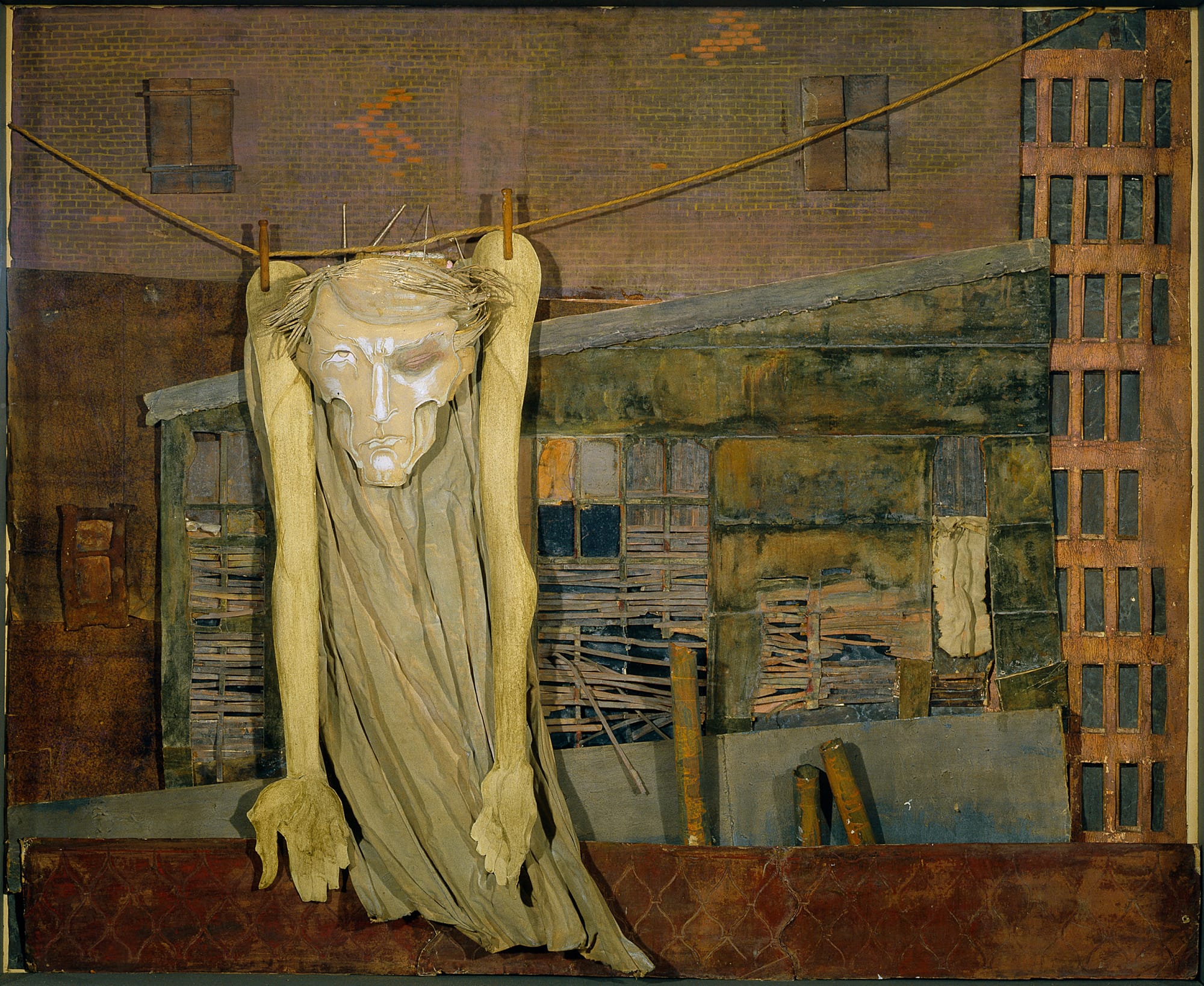 In 1959, Marcel Duchamp curated Mina Loy’s final solo show. The exhibition at Bodley Gallery in New York City featured Loy’s groundbreaking collages from the 1940s and early 1950s, which were made of rags, cardboard, egg cartons, and other discarded materials picked up around the Bowery, where the artist had lived. Called “shocking and macabre” by a contemporary reviewer from Arts Magazine, Loy’s works predated the celebrated assemblages of artists like Jasper Johns and Robert Rauschenberg. “She made art from trash long before dumpster diving was a thing and multimedia was a term,” says writer and editor Roger Conover. But Loy’s late works weren’t just materially experimental; these collages depicting homeless men and other destitute figures from her neighborhood had a distinctly human element.