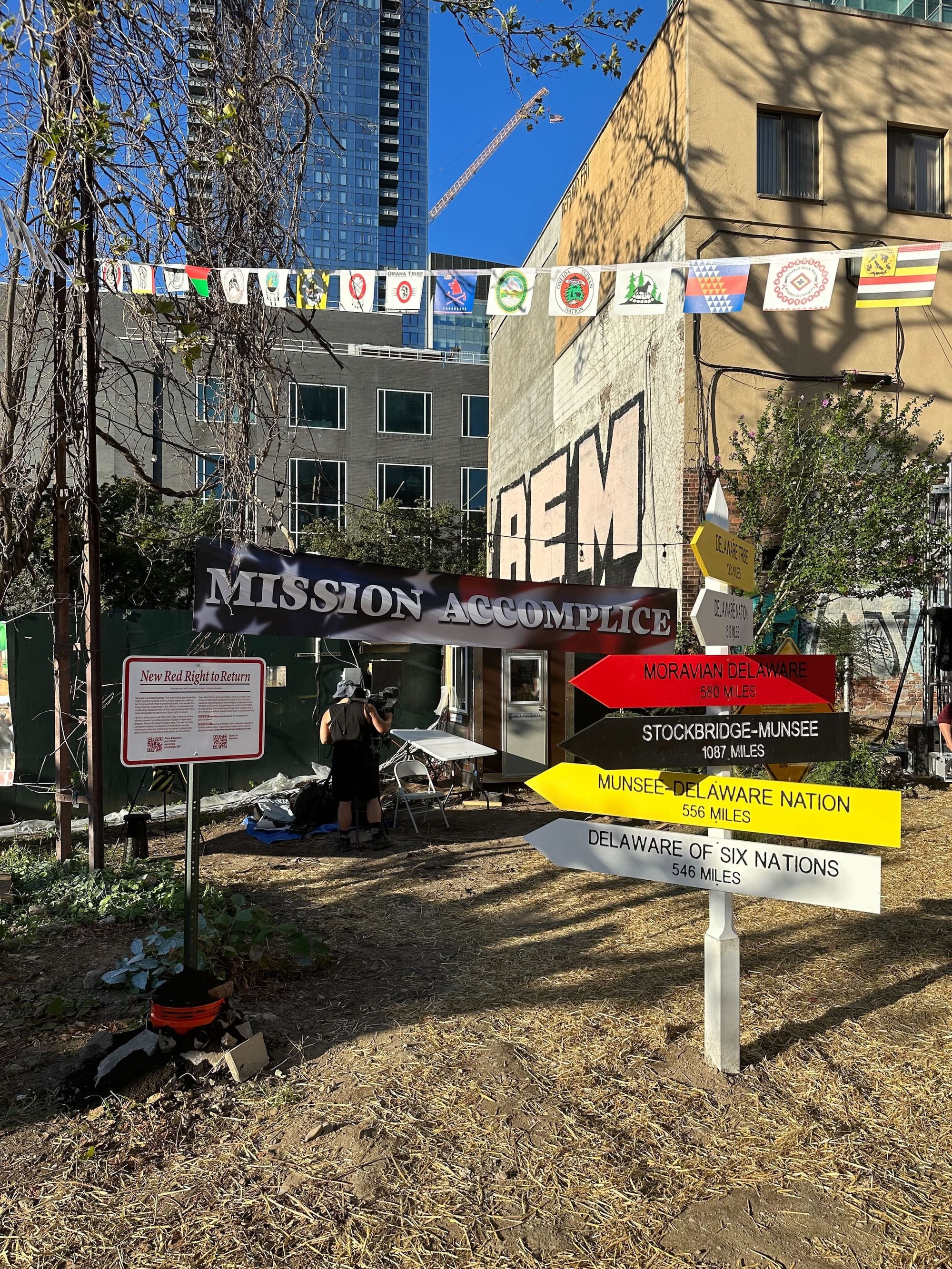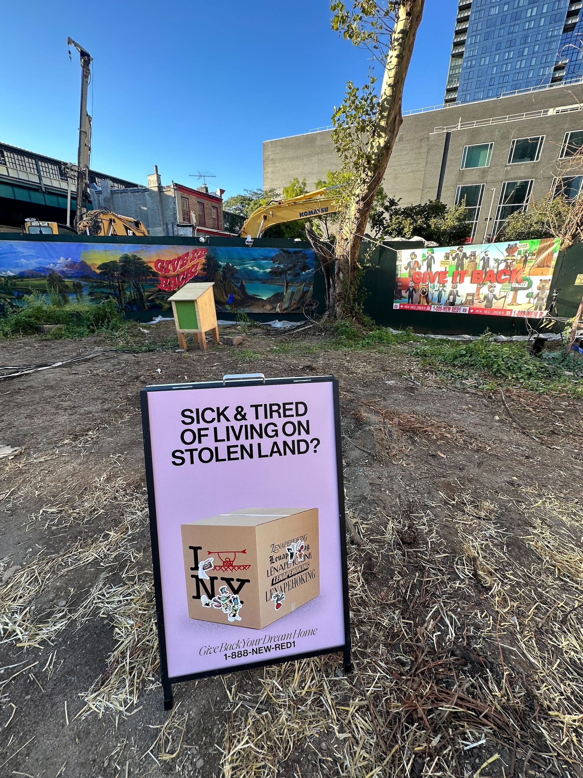 “Part of the idea is to kind of normalize this gesture because it is possible,” Adam Khalil told Hyperallergic. He added that the point of the exhibition is “not about displacing more people,” a nod to rising evictions in New York City, but “about changing relationships to place, and also respecting and engaging with tribal sovereignty.”
