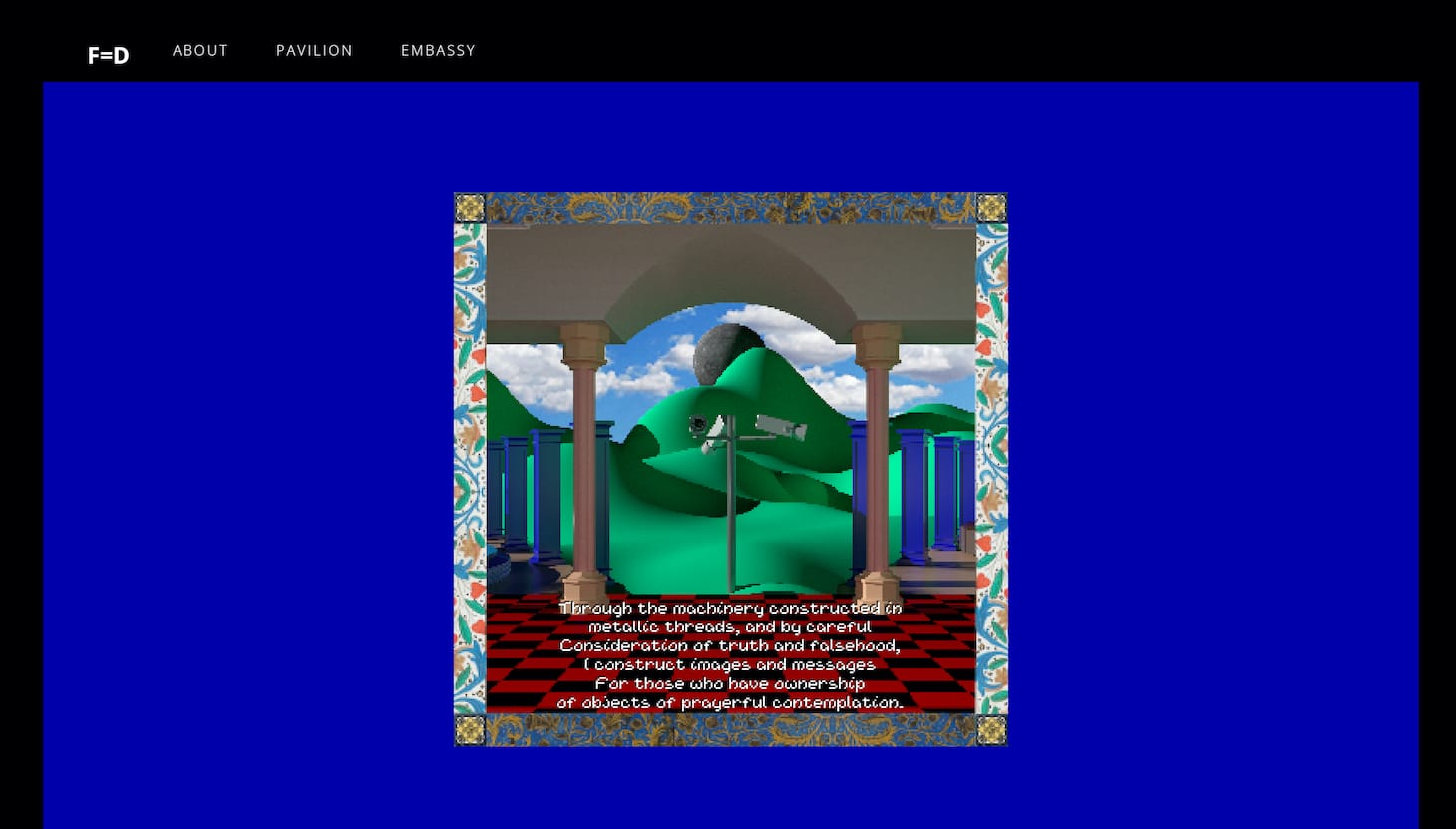When deciding about artists showing in both the pavilion and the embassy, we had to think conceptually about what that meant. It was never meant to be a direct translation. If you have a video online and then show that on a monitor in a physical space — it’s the same artwork, just a different screen, right? The experience doesn’t really change.