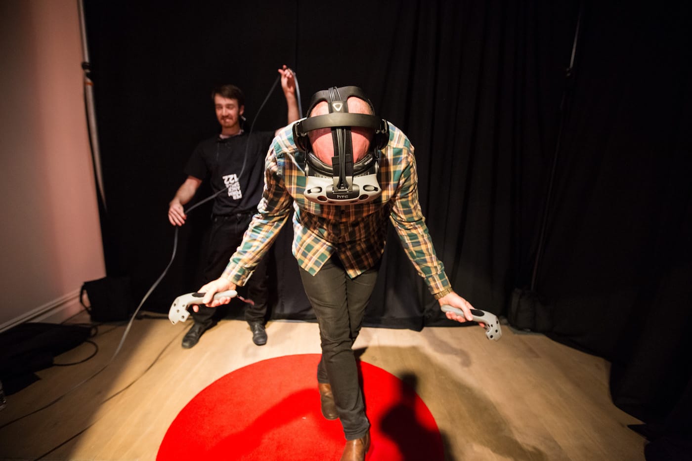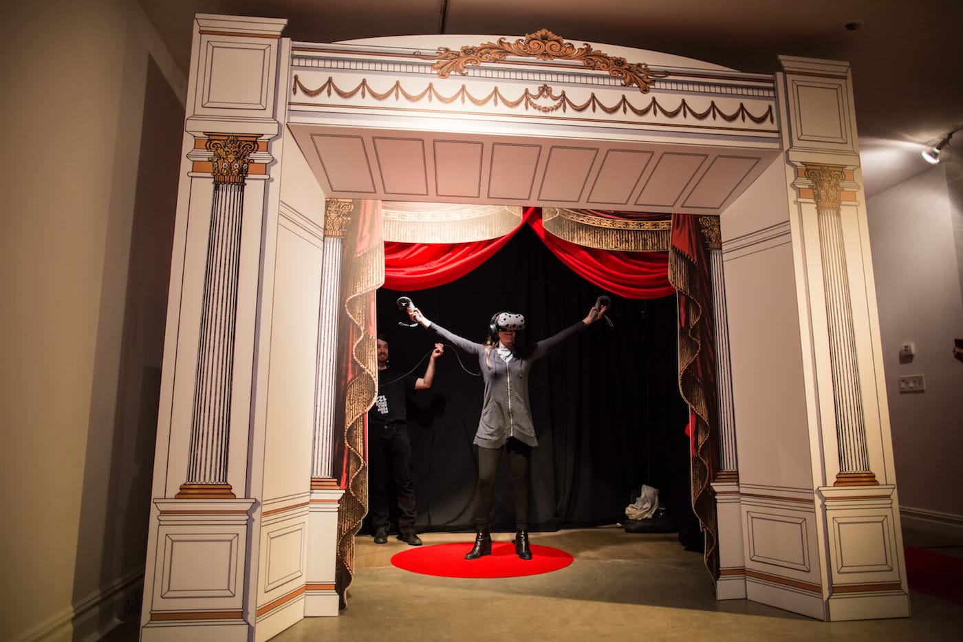 I was disturbed to find out after the fact that while blindfolded by the ungainly mask of the virtual reality visor, the real curtain before which I stood was pulled back, so that others waiting their turns could watch me gesture and move about on the fantasy stage. The involuntary participation in what became a public performance raised ethical questions for me.