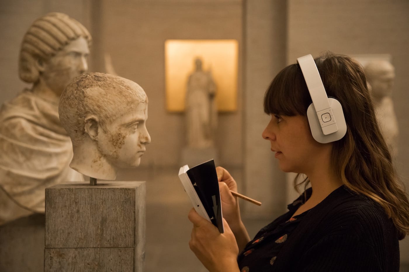 For quite some time, Andrea Fraser and the team of Janet Cardiff and George Burrs Miller, among other artists, have created recorded tours for the context of museums. Those recordings encouraged listeners to observe the environment of the museum, including its human inhabitants. Rimini does likewise at the Brooklyn Museum, but its audio material frequently disrupts rather than promotes the sense of immersion. Though there are monologues focused on artifacts in the museum’s stellar Egyptian collection and instructions to look around, the Rimini project includes much recorded audio material from completely outside the museum context, which tends to detach the visitor’s experience from the surroundings.