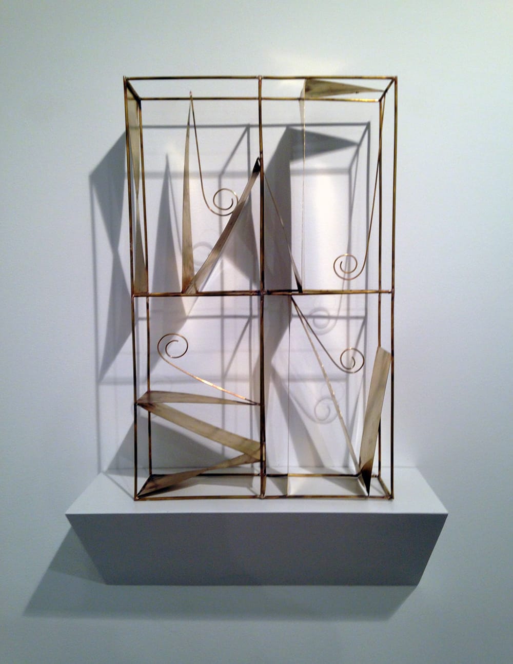 Music continued to be a well of inspiration. The piece on display from the above-mentioned Contrappunto series is “Contrappunto XIII” (1978 [1985]), an amalgam of brass triangles, rectangles, and stems curling into the same spiral we saw in “Scultura n. 11,” which can be taken as a symbol for infinity. (And which also appears on the horizontal steel rod at the top of “Scultura C (Infinito),” the first work cited in this review.)