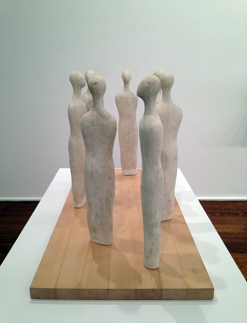 It’s interesting to note that while Melotti, as Fogle writes, made “a necessary return to the human figure” after the war, it is present in his work mostly by implication. Other than a set of figurines made between 1945 and 1947, including a gaggle of red clay horned devils and the stately “I Sette Savi” (“The Seven Sages,” 1960) — plaster figures reminiscent of Giorgio de Chricio’s metaphysical mannequins arranged in an inwardly-facing oval — the human body is fragmented, sketched in, hinted at. There is certainly no embrace of the sculptured figure that we see in contemporaries such as Marino Marini and Giacomo Manzù.