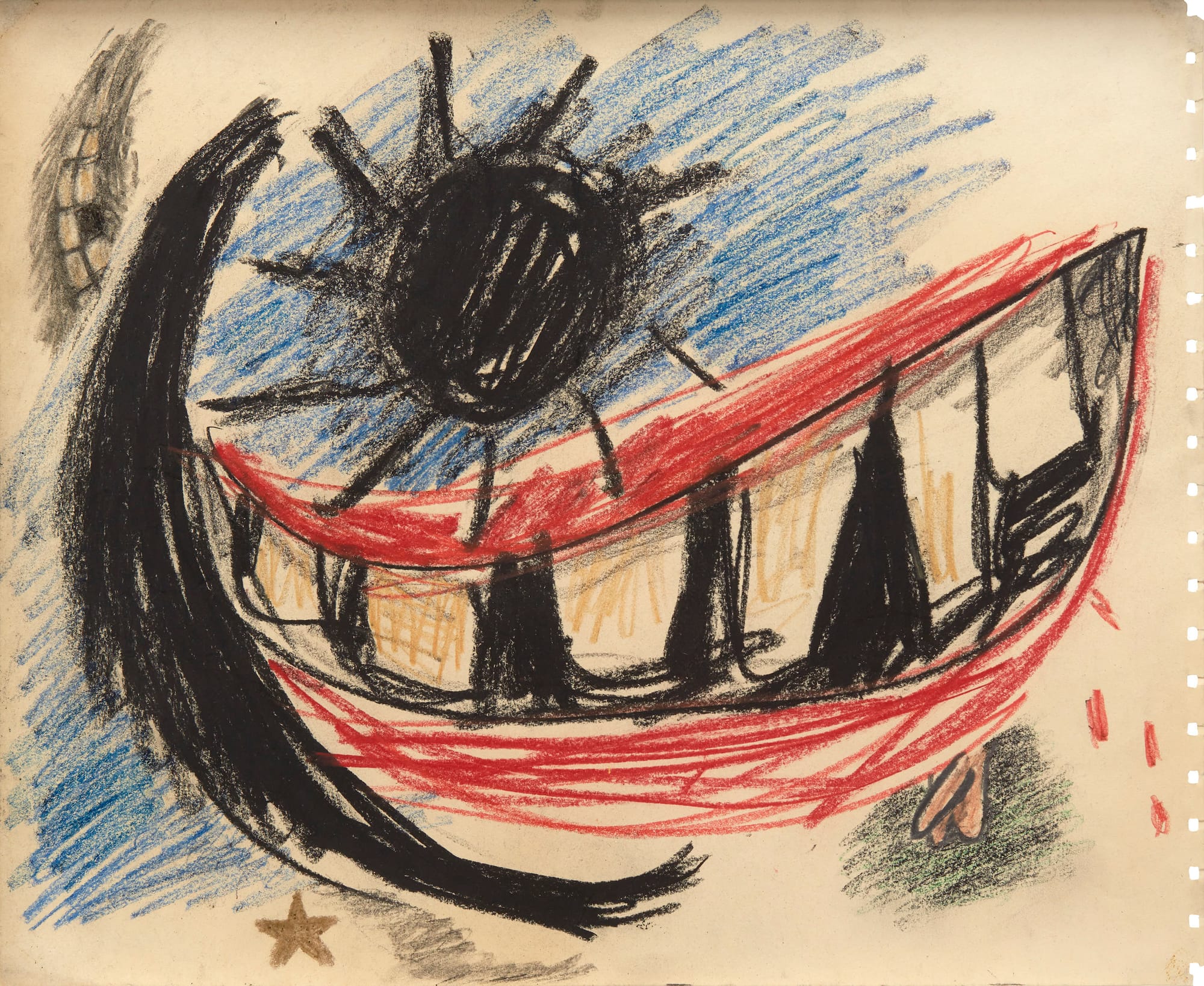 I don’t care about his pedigree, though, because KAWS buys art by the boatload. This exhibition features more than 350 works on paper, plus paintings, sculptures, and furniture, selected from a collection of 4,000 pieces. I am not talking about big, shiny blue-chip art objects; KAWS buys drawings by artists of every stripe, from Pablo Picasso, Willem de Kooning, and Ed Ruscha to Susan Te Kahurangi King, Helen Rae, and William A. Hall, to sketchbooks by graffiti artists (Dondi, CRASH, and Rammellzee), which he began trading his work for when he was a graffiti artist.