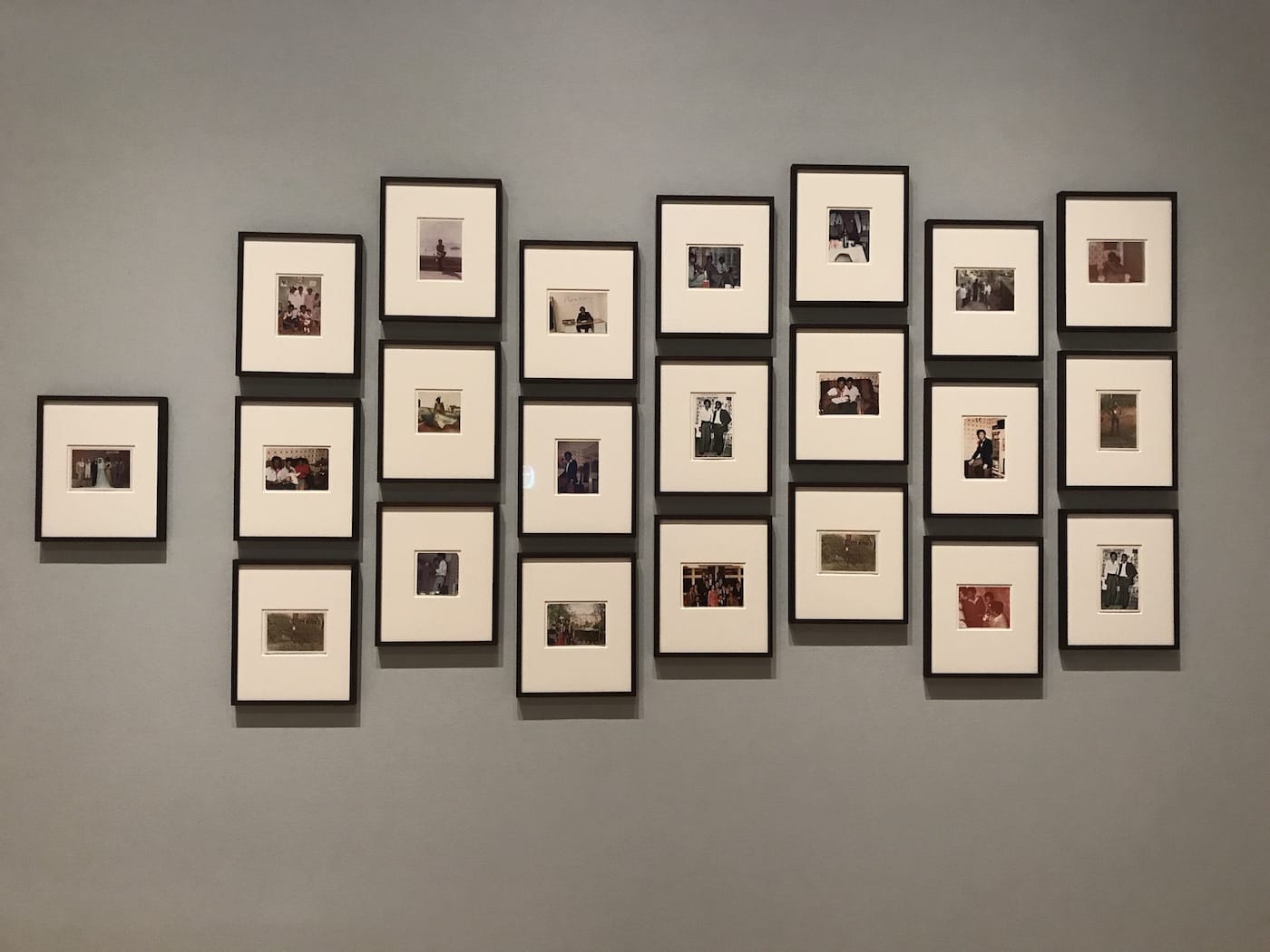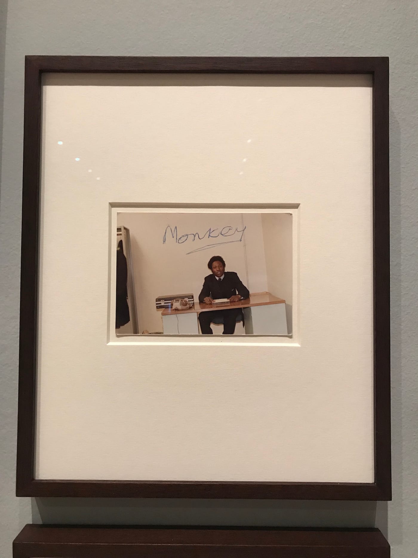 More interesting, though, is the handful of lesser-known artists in the exhibition. A particular standout is Karl Ohiri, a British-Nigerian artist who here showcases a variety of vandalized polaroids from his mother’s collections, called, “How to Mend a Broken Heart” (2013). Shortly after his parents’ divorce, Ohiri’s mother reportedly started to blot out the father’s image from family photos after escaping her abusive marriage. Looking carefully, you can still see some punctures in the images from a stabbing pen. Elsewhere, his mother has written above the father, “MONKEY” and “FALSE.” The viewer is left to wonder if these captions represent the despondency of a failed marriage or internalized racism, the likes of which only emerge from the deepest wells of rage.