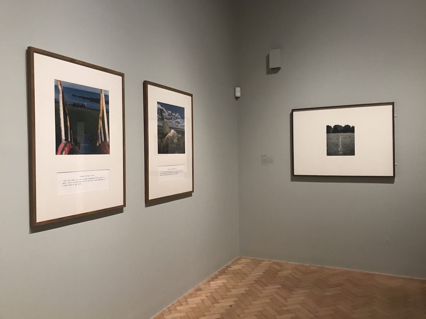 There is a pervasive interest in documentary photography in the exhibition — a clear effort to make the rather ambiguous theme of absence more politically relevant to the viewer. For instance, Paul Seawright’s faux crime photography snapshots in his “Sectarian Murder” series (1988–91) juxtapose bright, colorful photography of Belfast with captions narrating the brutal acts of violence that once took place there. The disappearance of human life barely registers in the idyllic seascapes and playgrounds of Northern Ireland, making the ghostly presence of death all the more threatening.