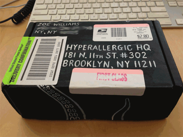 Recently, we received a mysterious black cardboard box covered in white writing and octopus tentacles. The package was from artist Zoë Williams, who surprised us with a wonderful — if unexpected — narwhal felt sculpture.