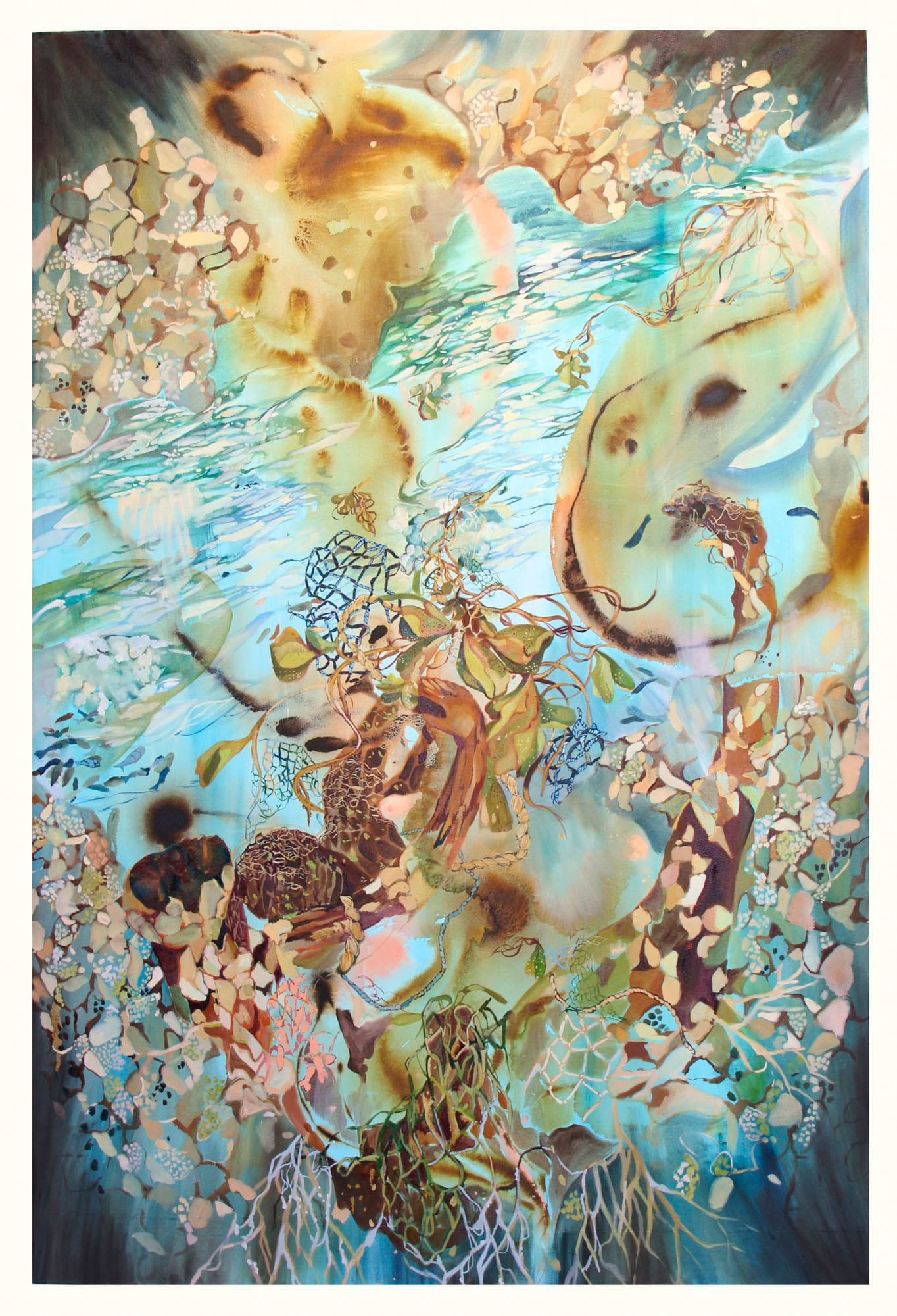Wood created a new work for the exhibition titled "Brooklyn Baby," referencing a Lana Del Rey song of the same name. "All the images of me in the work are from my studio and apartment in Brooklyn, with some background details from the Brooklyn Botanic Garden, which is where I had my first real date with my fiancé, and even the Winthrop Street stop on the 2 train," Wood said.