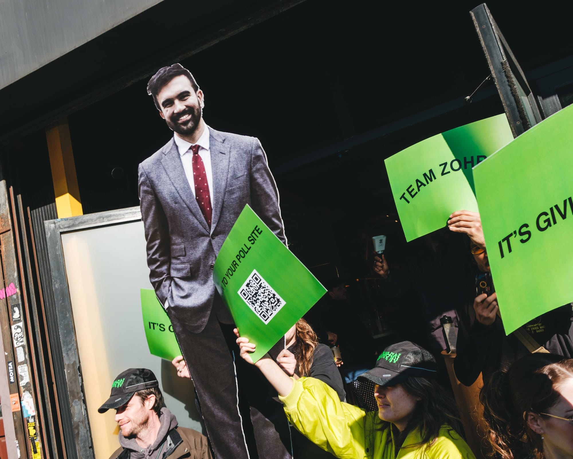 “Zohran (the real person) came to address the crowd at the midway point,” Michelsen-Correa recalled. “He didn't notice at first that there was a life-size cutout behind him the whole time in the crowd. When he turned around and started walking and looked at it, he burst out laughing.”