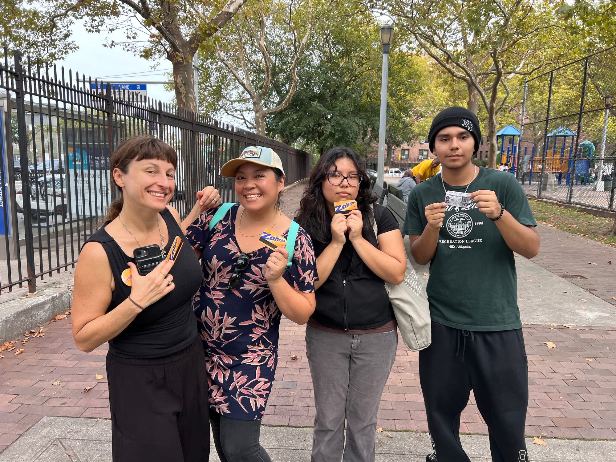 Kristine Michelsen-Correa, who launched an unofficial campaign merch project called "it's giving prizes" with Mexican designer Chris Cruz after Mamdani's primary victory, believes the candidate is already making New York “more joyful to live in.” (A cut of the proceeds from sales of hats emblazoned with “Zohran" in an electric typeface benefit a mutual aid organization for asylum seekers.) This weekend, Michelsen-Correa said she distributed 1,500 signs across neighborhoods during the citywide marathon, bringing with her a towering cardboard cutout of Mamdani that bobbed up and down during a DJ set in Greenpoint.