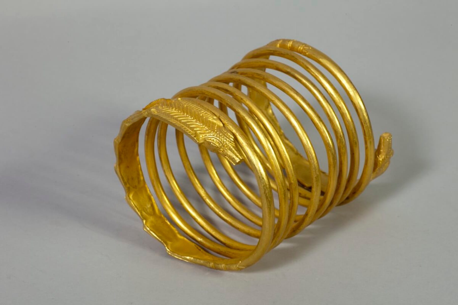 The objects were just a few of more than 500 gold and silver objects from at least 15 different museums across Romania on display in the show, which explores the ancient Dacian civilization that inhabited parts of the region during the 2nd century BCE. The helmet, which was used as a showpiece and is adorned with symbols from Getic mythology, was initially discovered by children in 1927. The three stolen bracelets come from a series of 24 pieces that have only been found in the ancient Dacian capital Sarmizegetusa Regia. Used as religious offerings, they come from sacrificial pits and are uniquely decorated with wolf fur and scales.