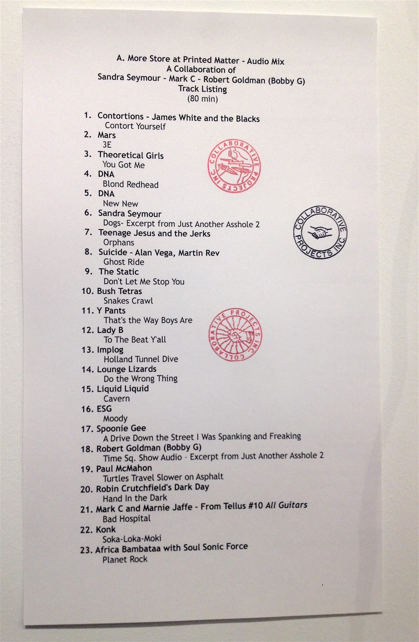 A. More Store continues at Printed Matter (231 Eleventh Avenue, Chelsea, Manhattan) through May 15. A Book About Colab (and Related Activities) is published by Printed Matter.